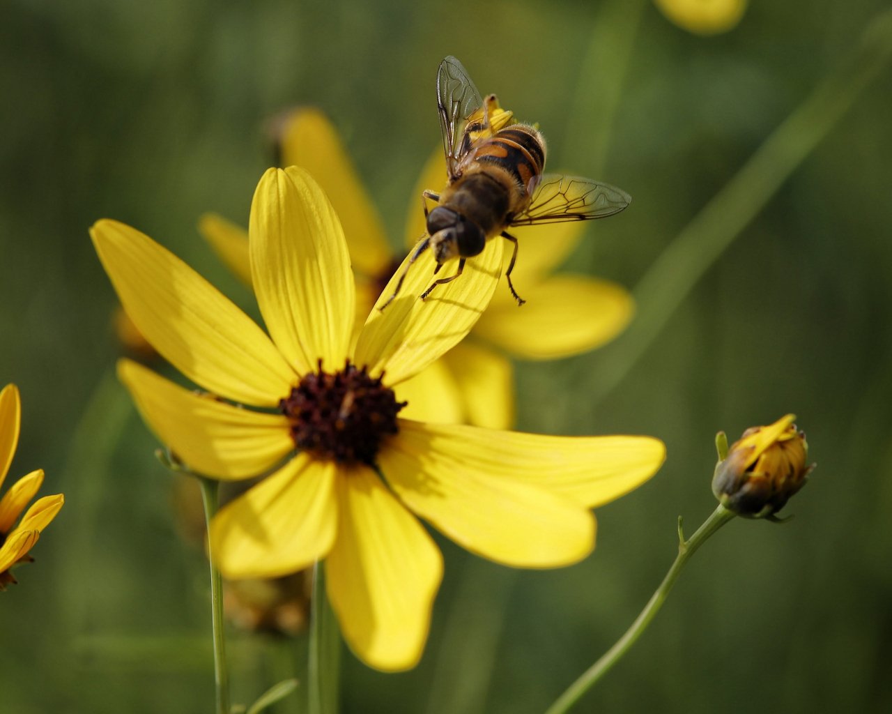 Обои: пчела на желтом цветке - 1280x1024