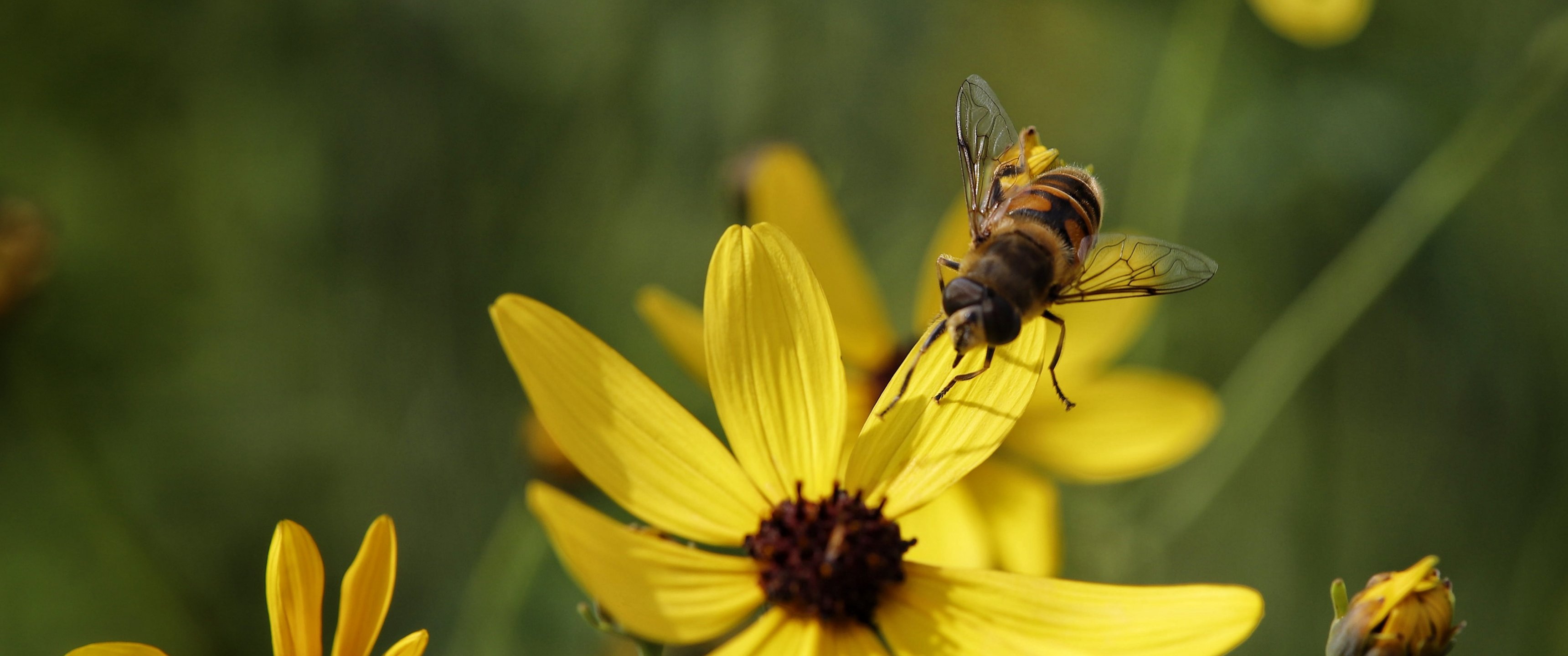 Обои: пчела на желтом цветке - 3440x1440