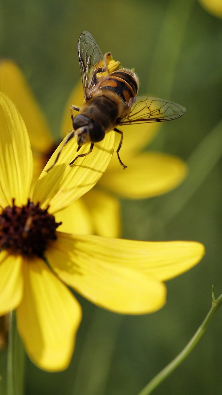 Обои: пчела на желтом цветке - 750x1334