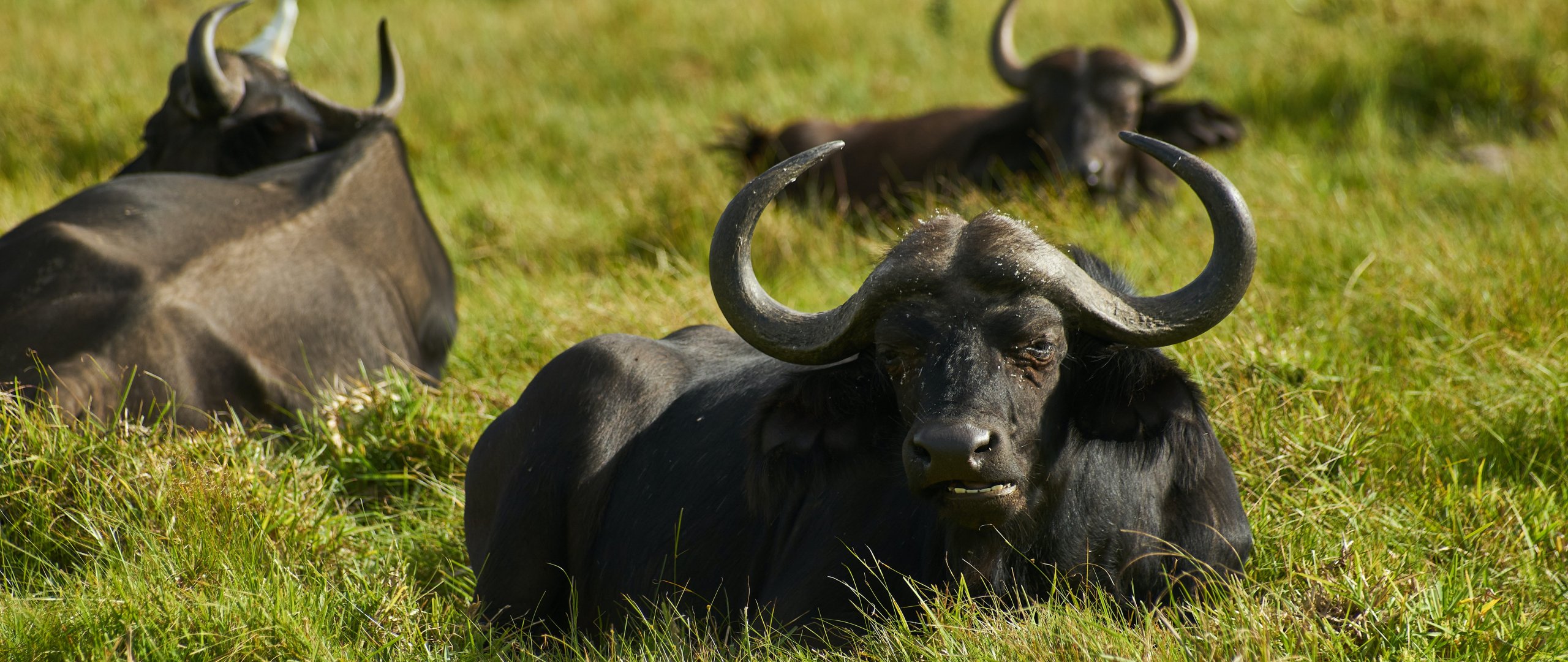 Обои: буйволы на пастбище - 2560x1080