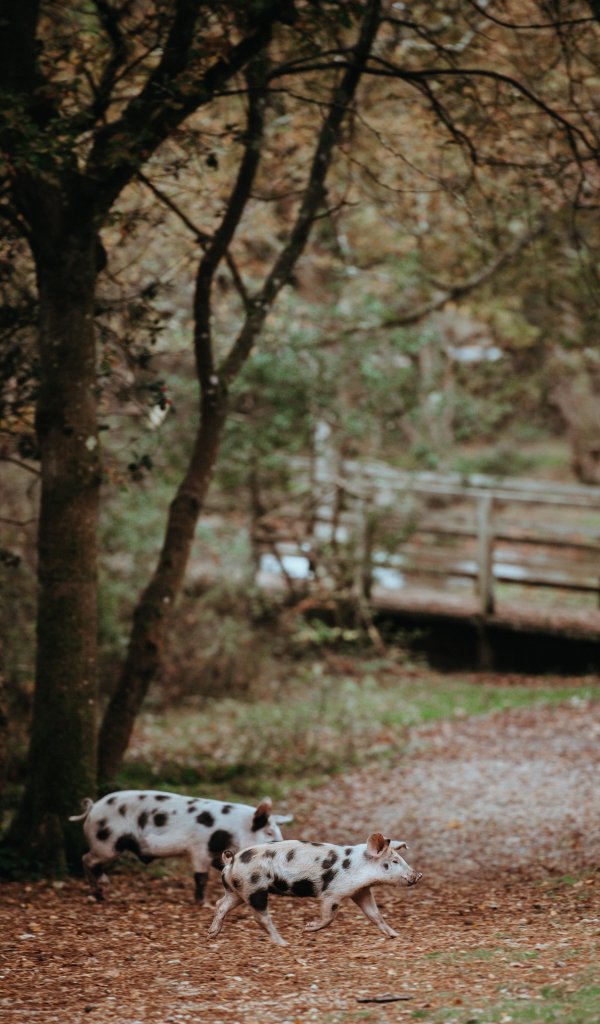 Обои: пятнистые свиньи, на прогулке - 600x1024