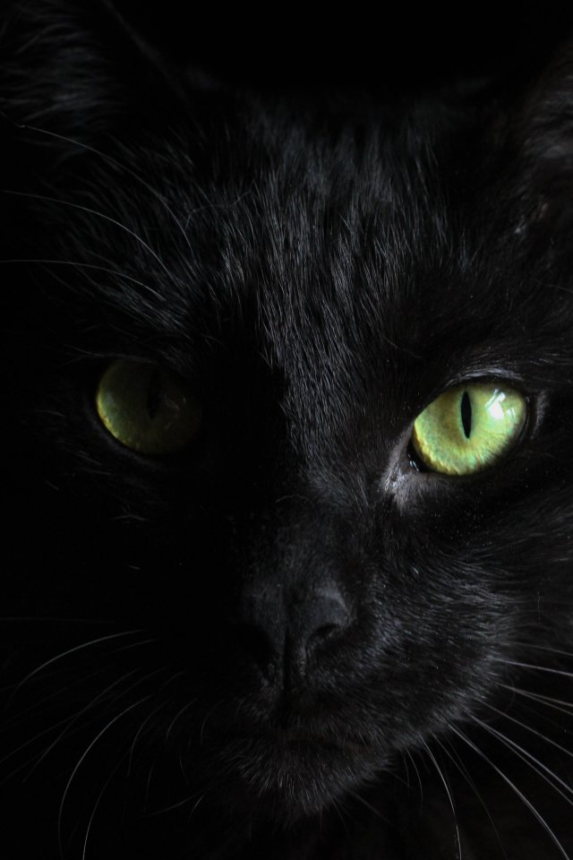 Обои: черная кошка, домашний питомец - 640x960