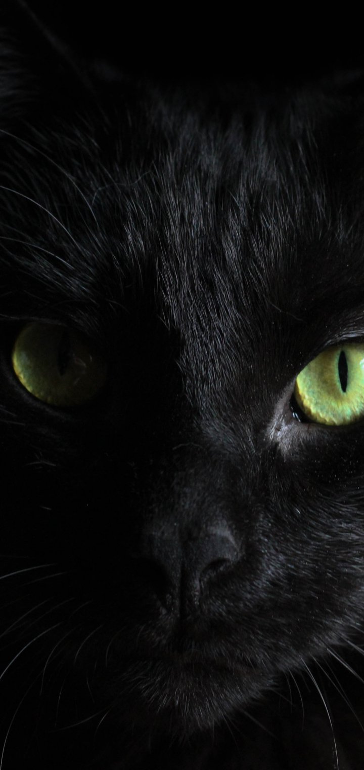 Обои: черная кошка, домашний питомец - 720x1520