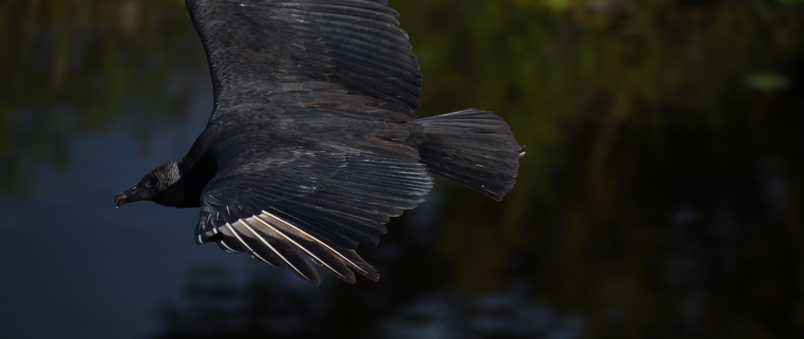 Обои: черная птица в полете - 2560x1080