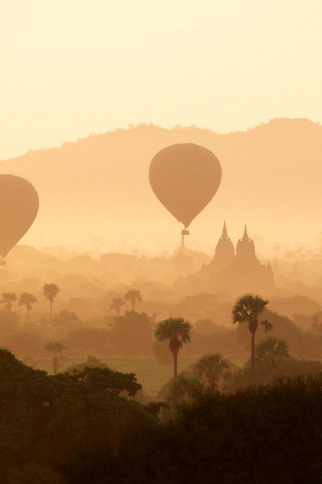 Обои: утренний рассвет, воздушные шары - 640x960