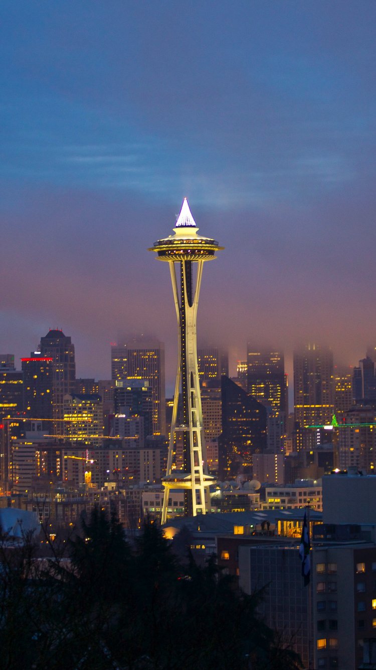 Обои: башня, ночной город - 750x1334