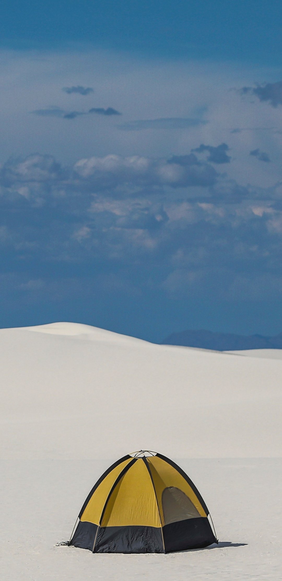 Обои: палатка, снежная долина - 1080x2220