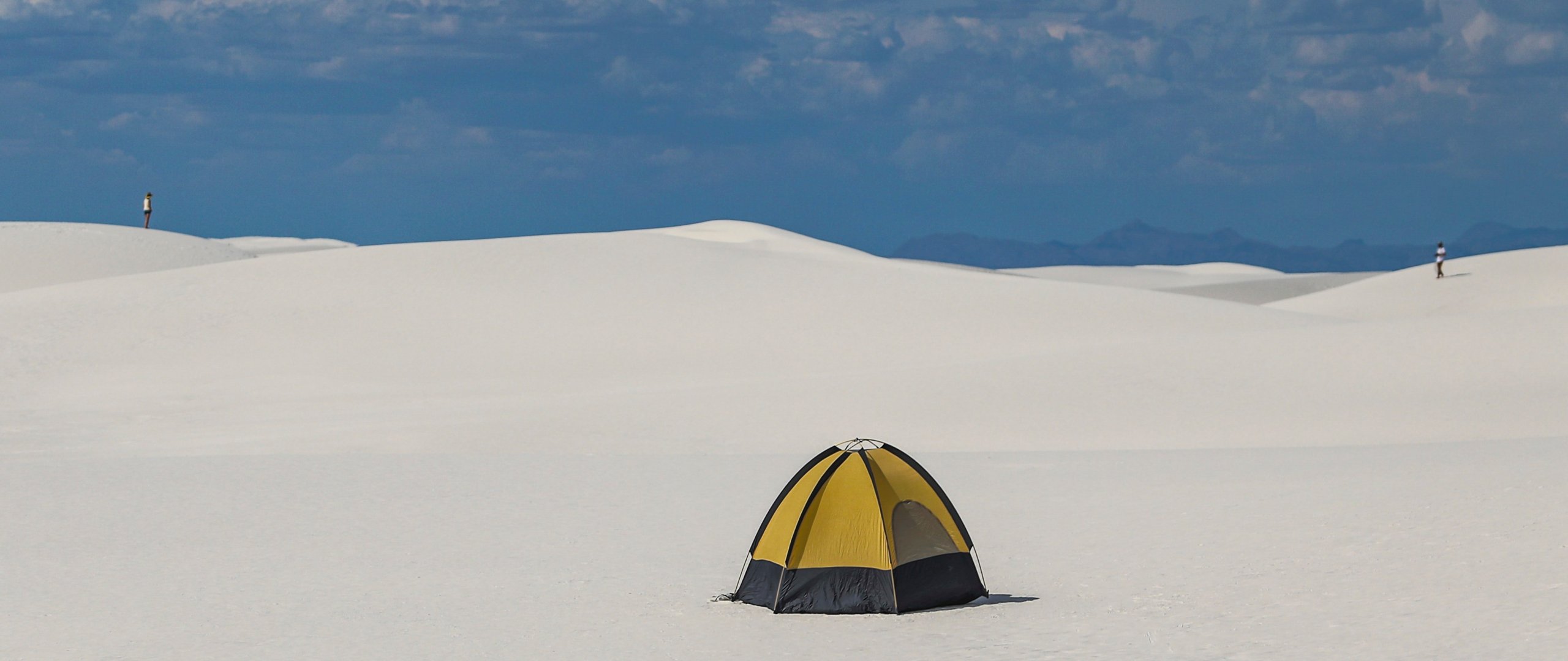 Обои: палатка, снежная долина - 2560x1080