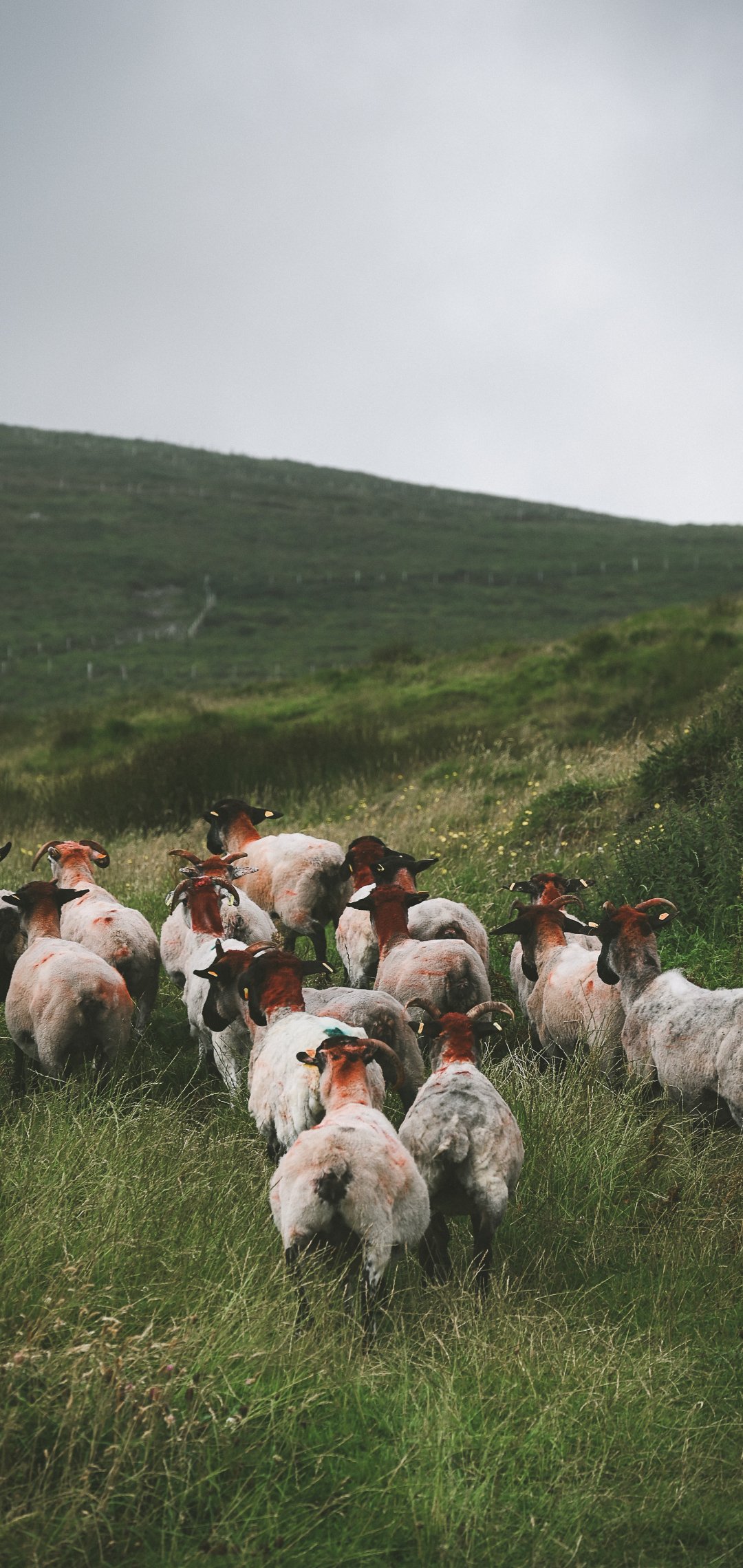 Обои: отара овец, пастбище - 1080x2280