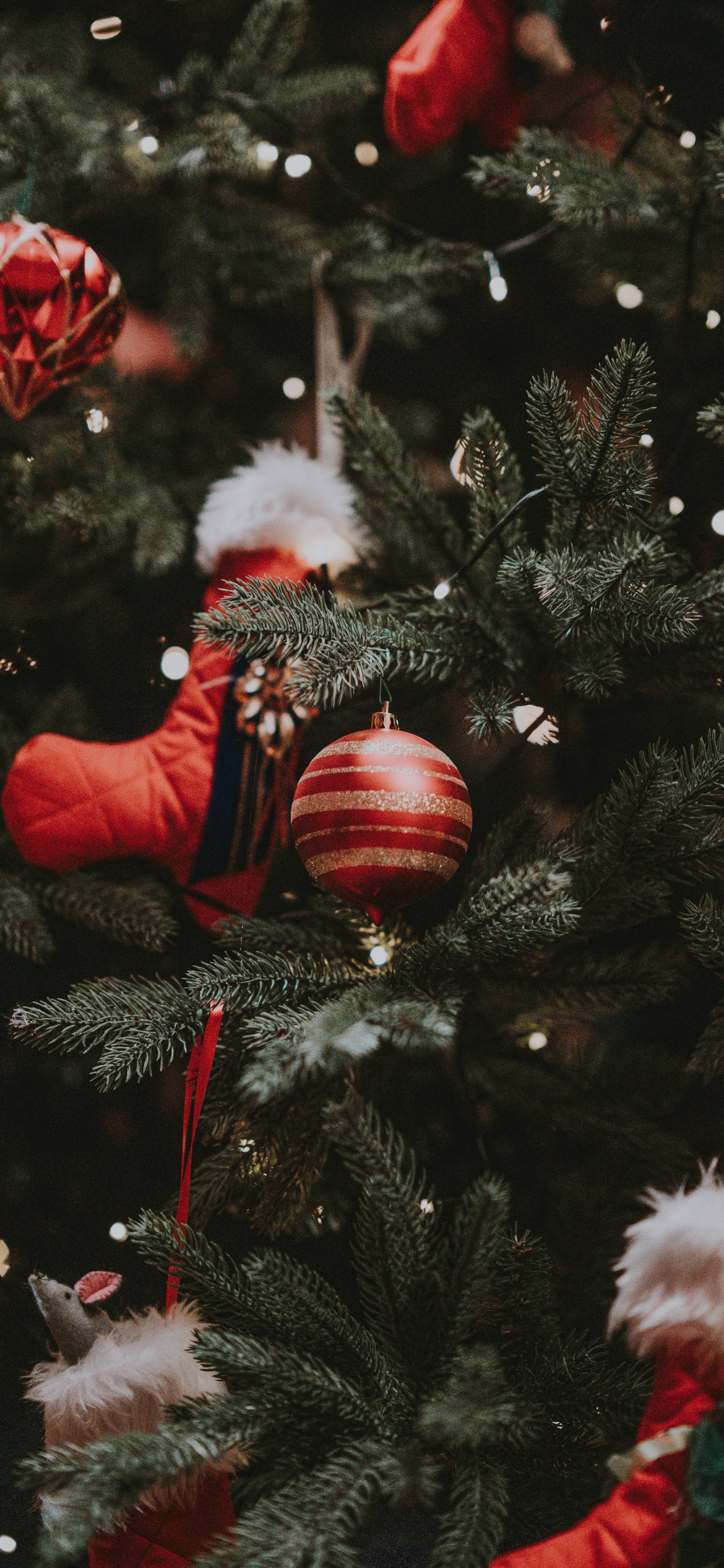 Обои: елка, елочные игрушки, Новый Год - 1170x2532