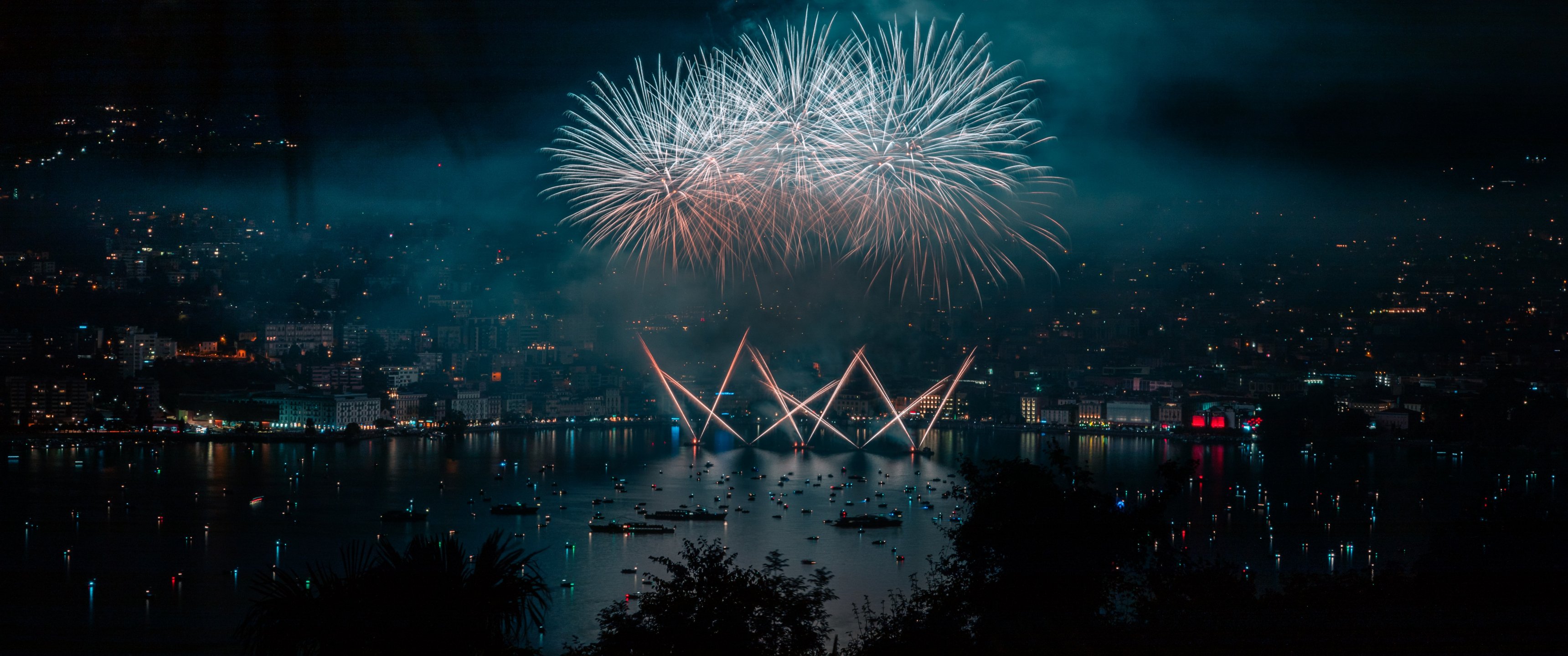 Обои: Лугано, Швейцария - 3440x1440