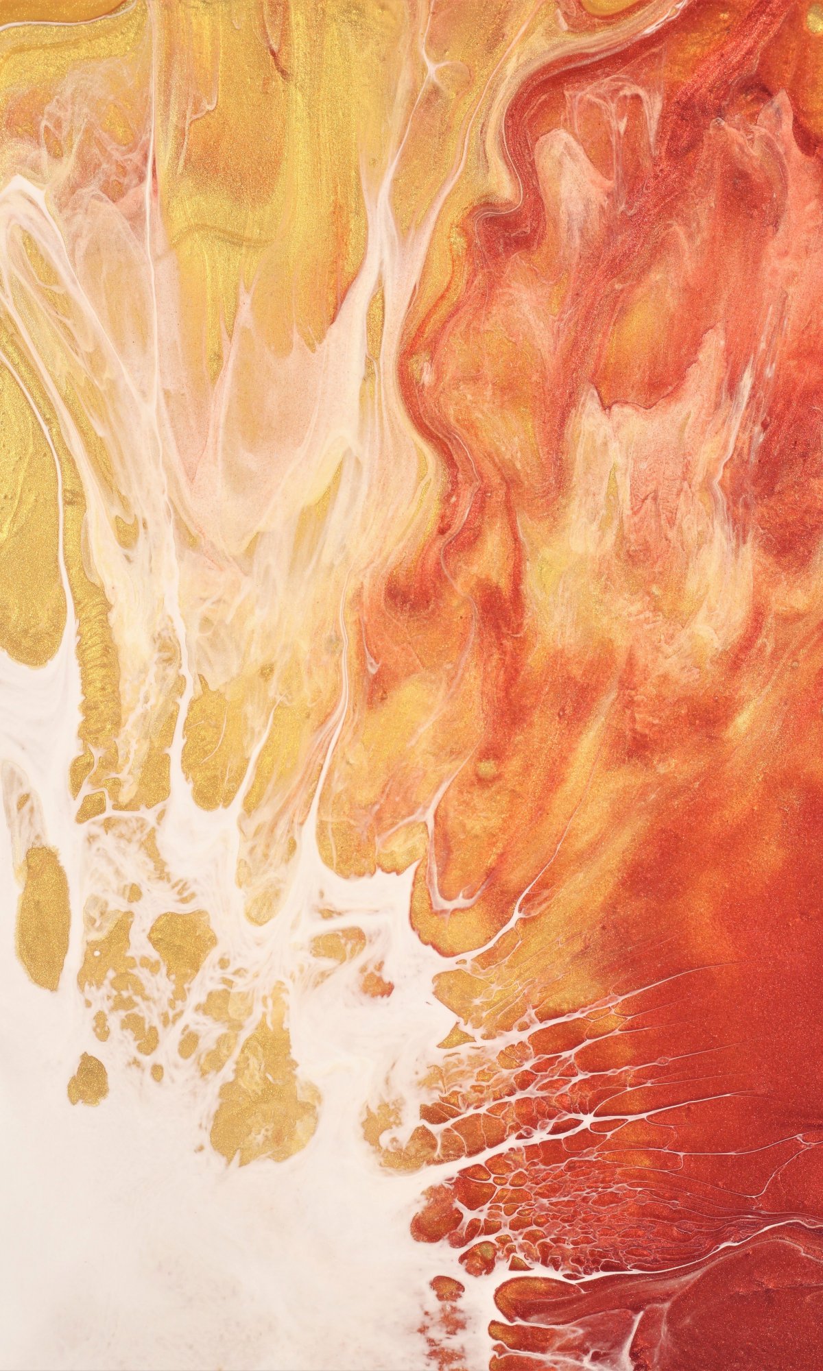 акрил, краска, разводы, оранжевый, белый