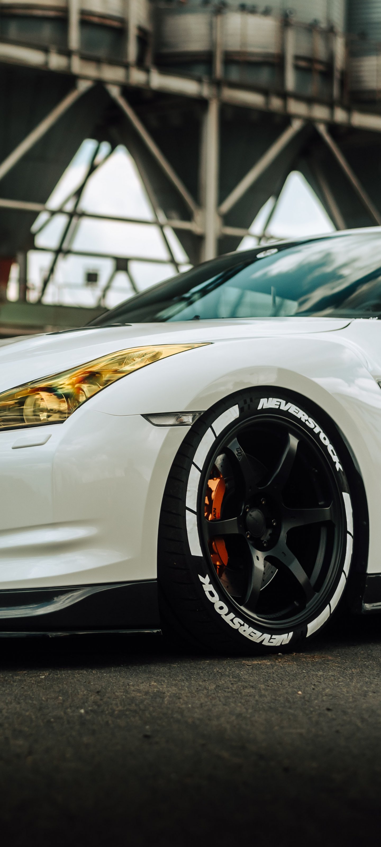 Обои: белая машина - 1440x3200