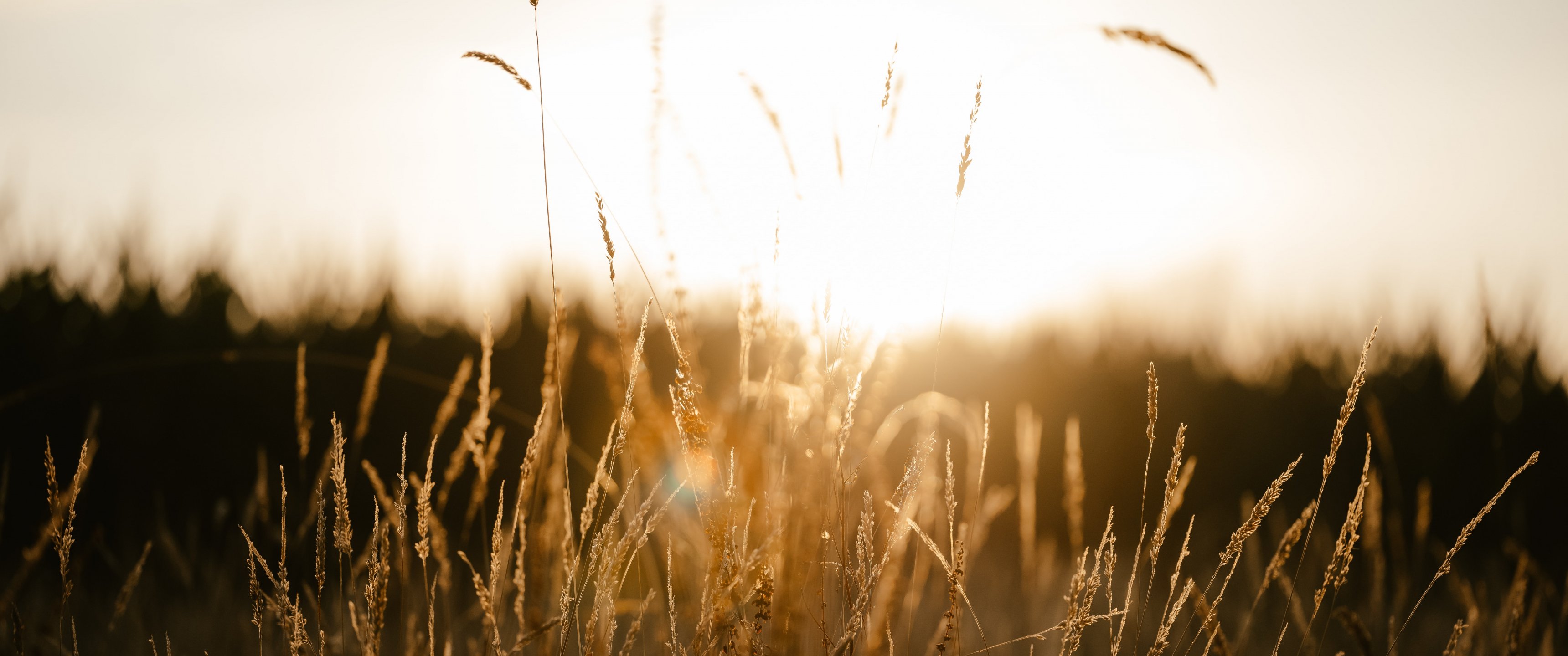 Обои: закат в поле - 3440x1440