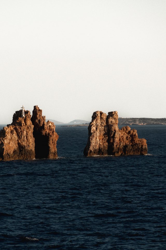 Обои: Греция, скалы в море - 640x960