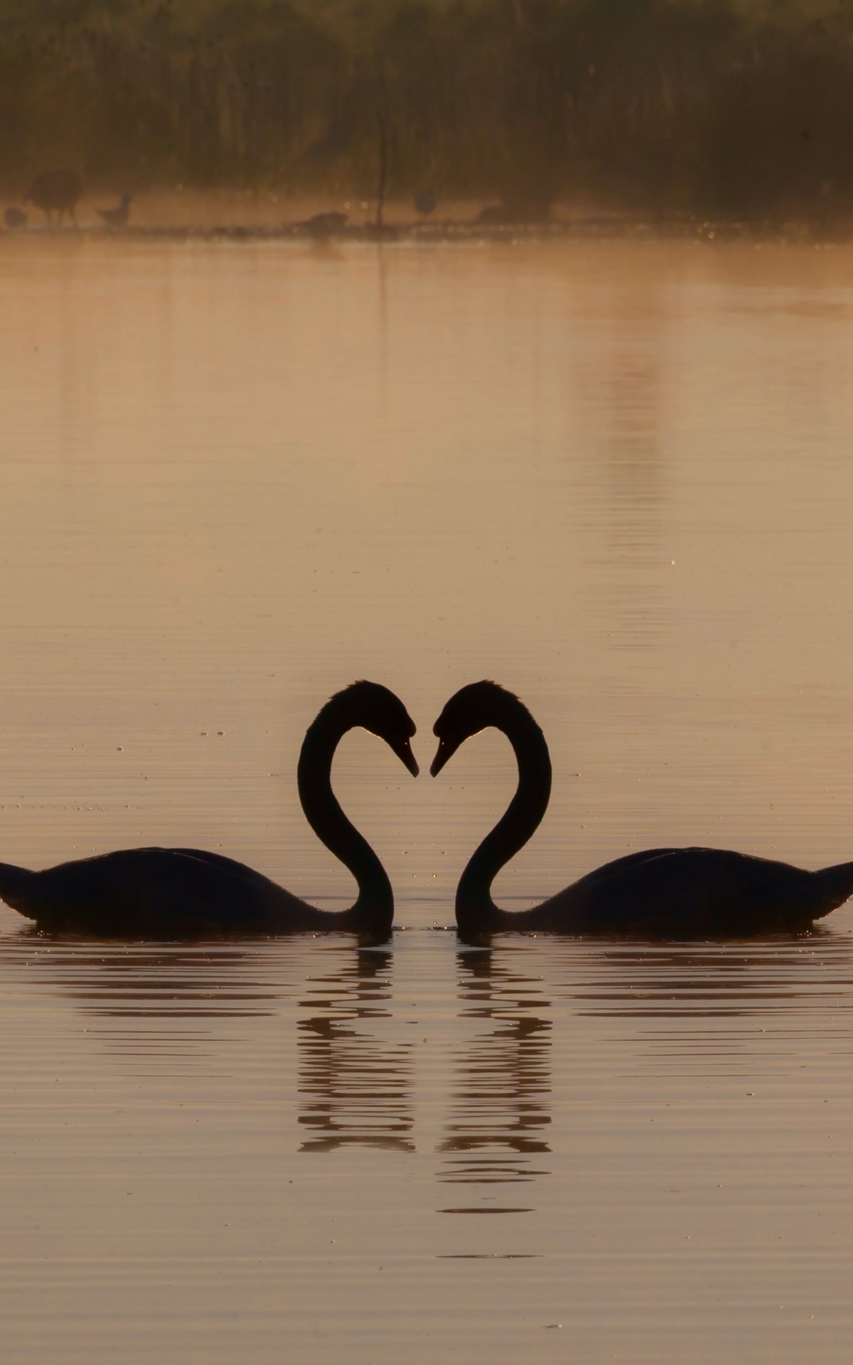 Обои: два лебедя, озеро - 1200x1920