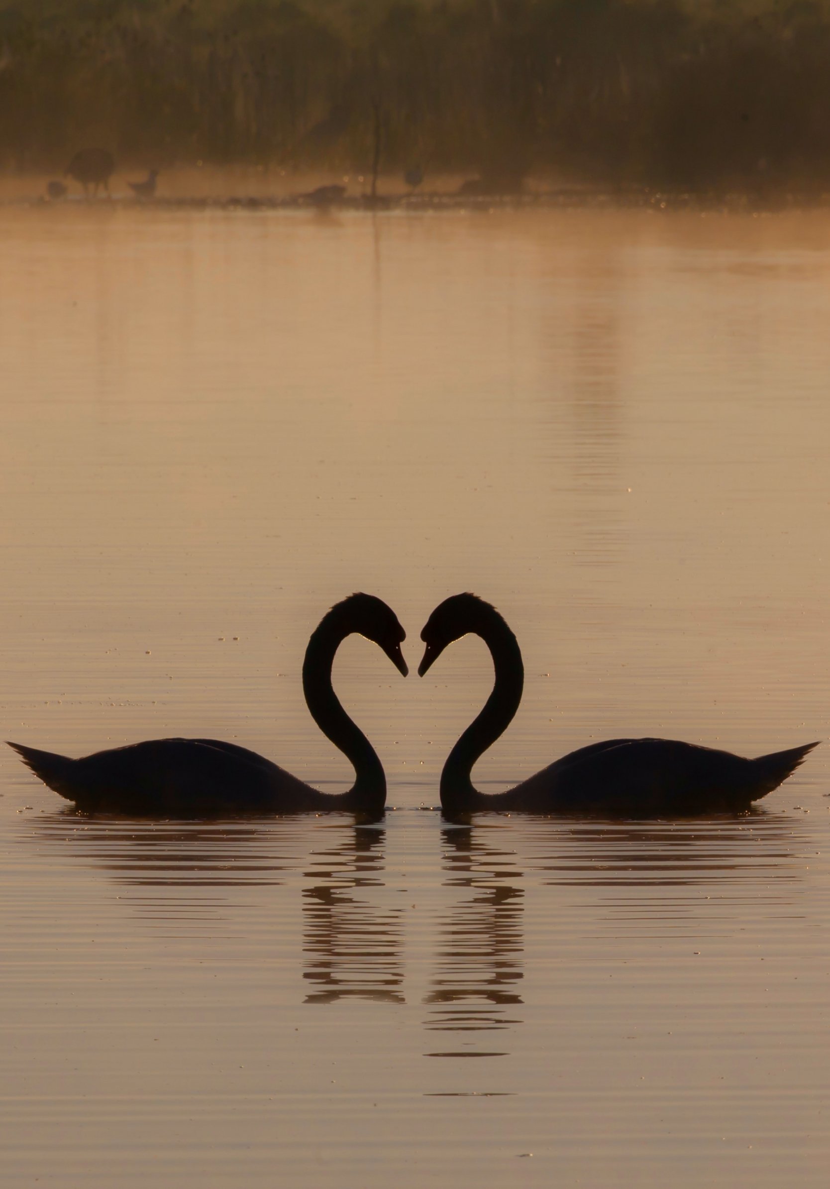Обои: два лебедя, озеро - 1668x2388