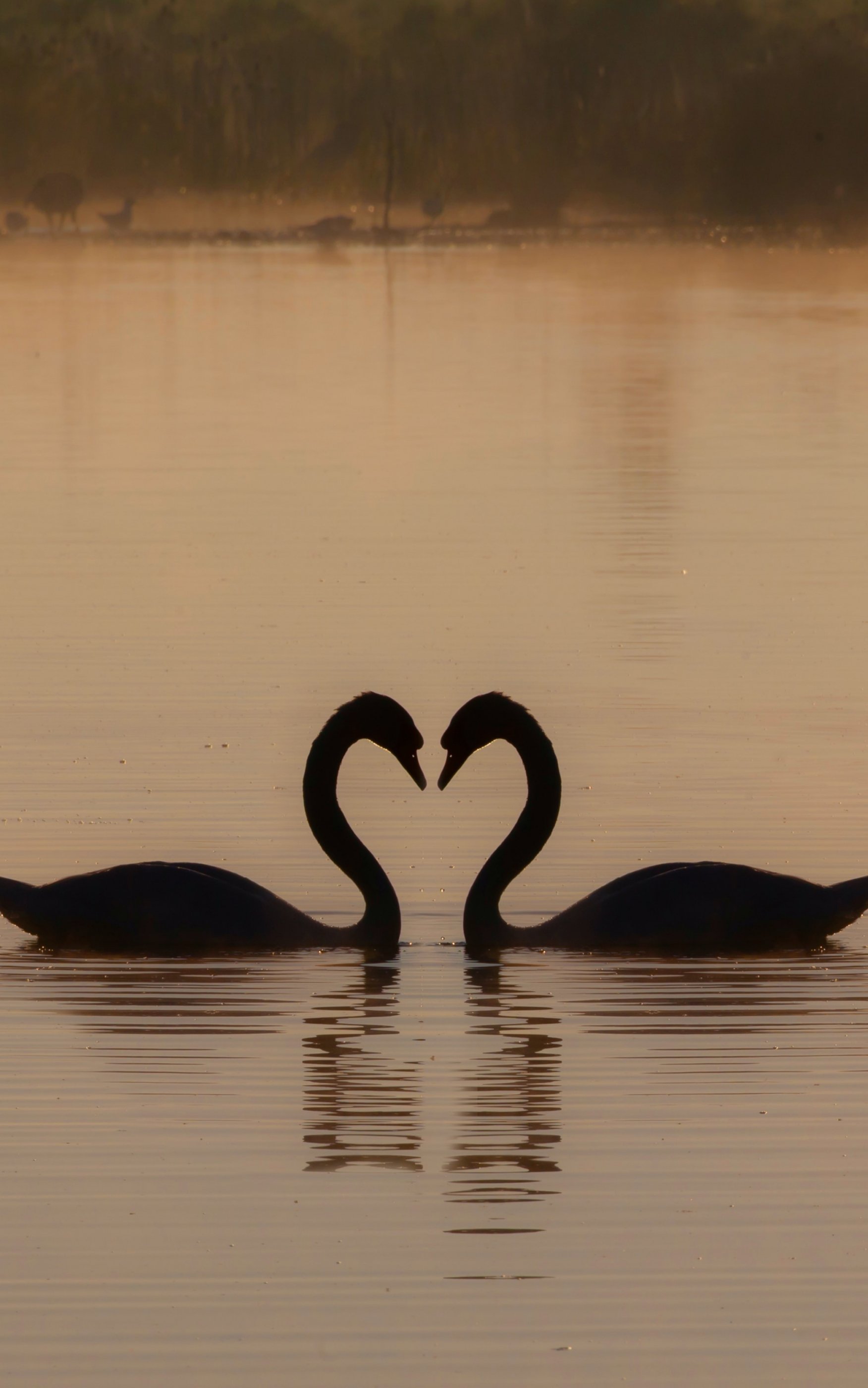 Обои: два лебедя, озеро - 1752x2800