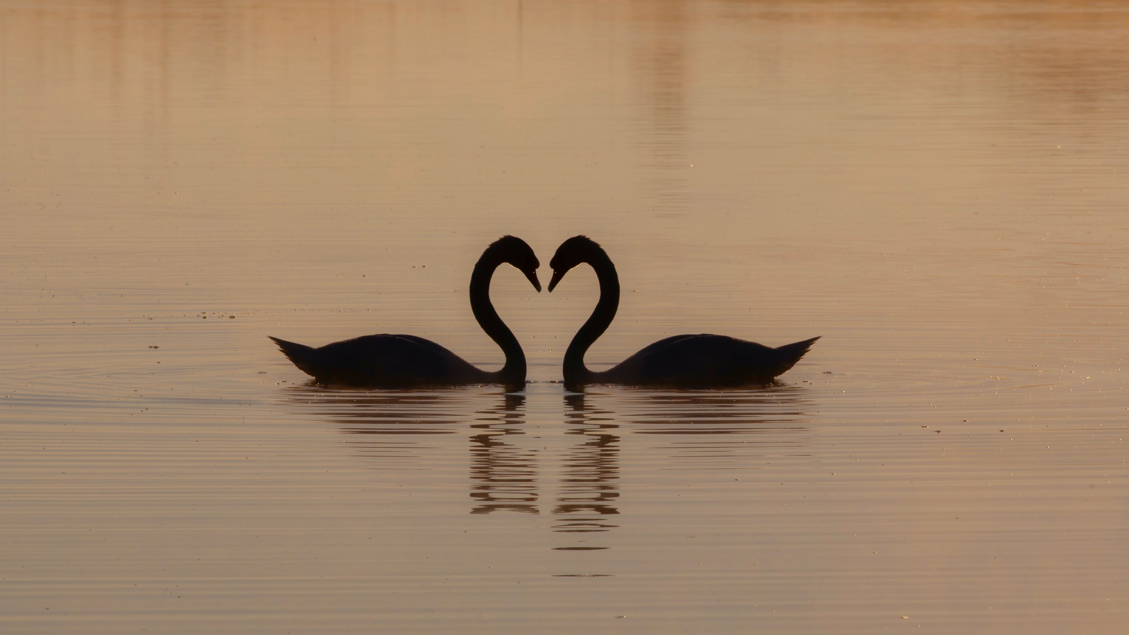 Обои: два лебедя, озеро - 3840x2160