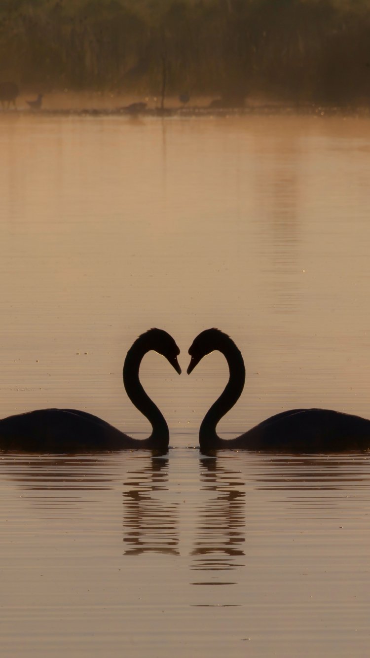 Обои: два лебедя, озеро - 750x1334