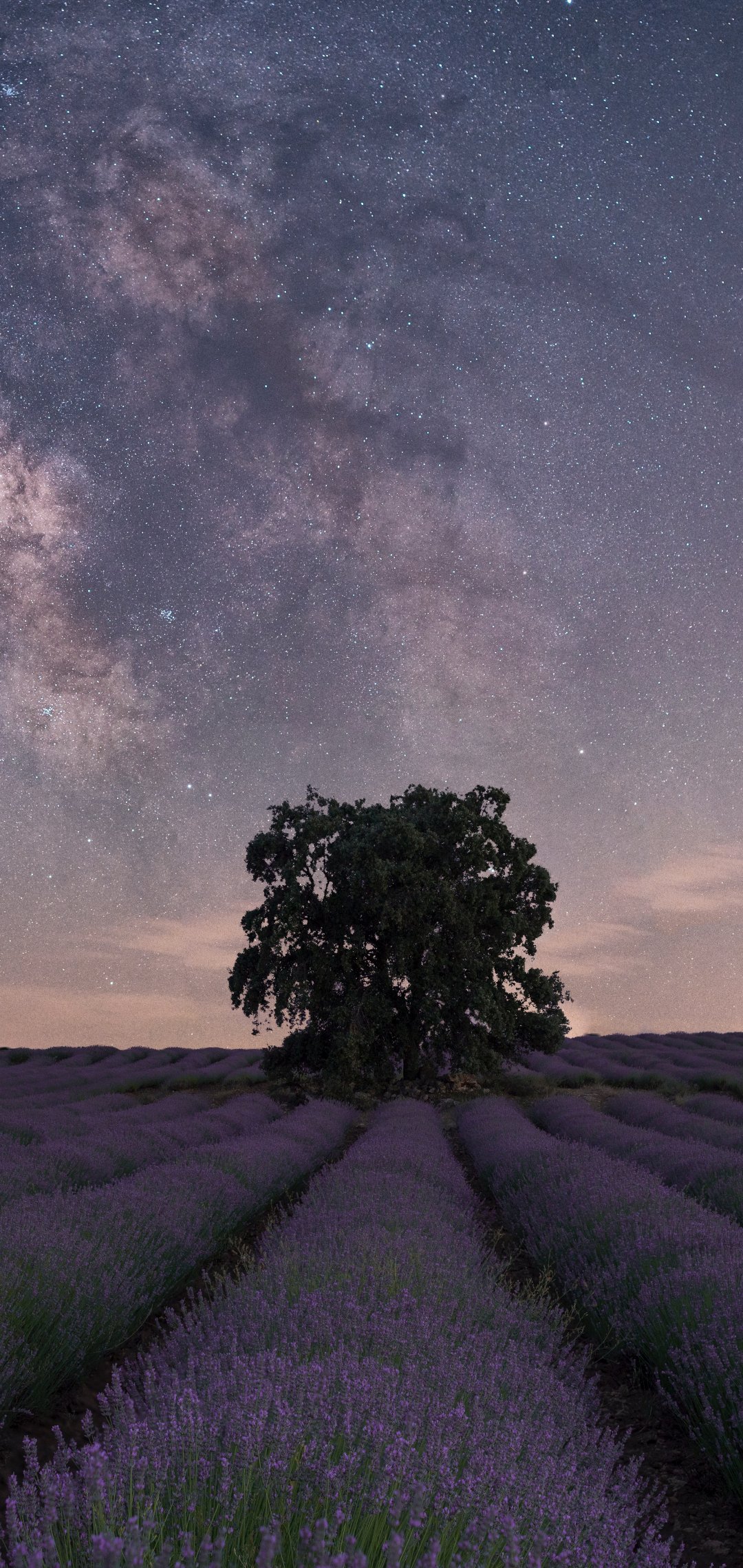 Обои: лаванда, ночное поле - 1080x2280