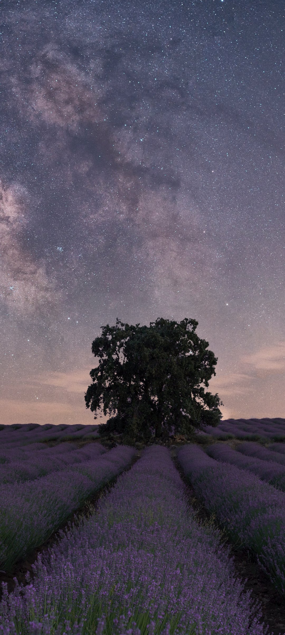 Обои: лаванда, ночное поле - 1080x2400