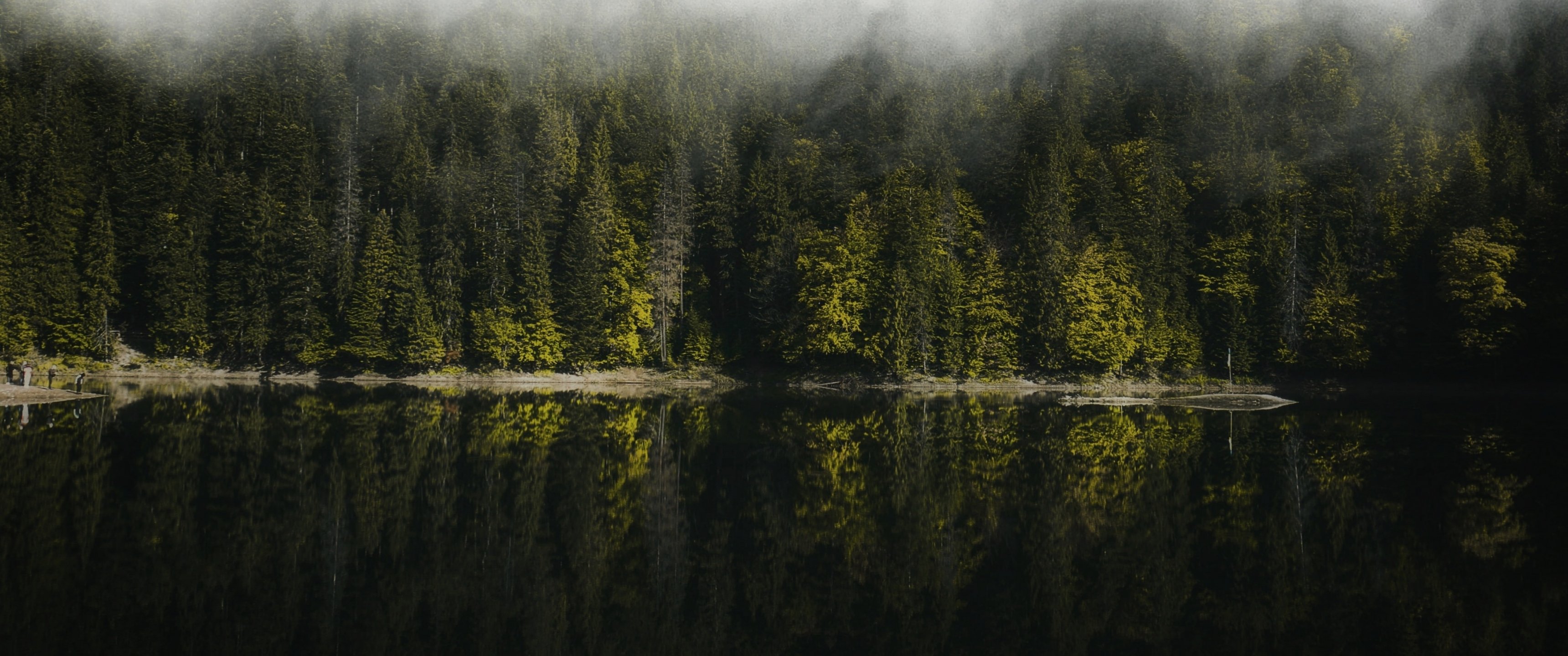 Обои: отражение леса в озере - 3440x1440