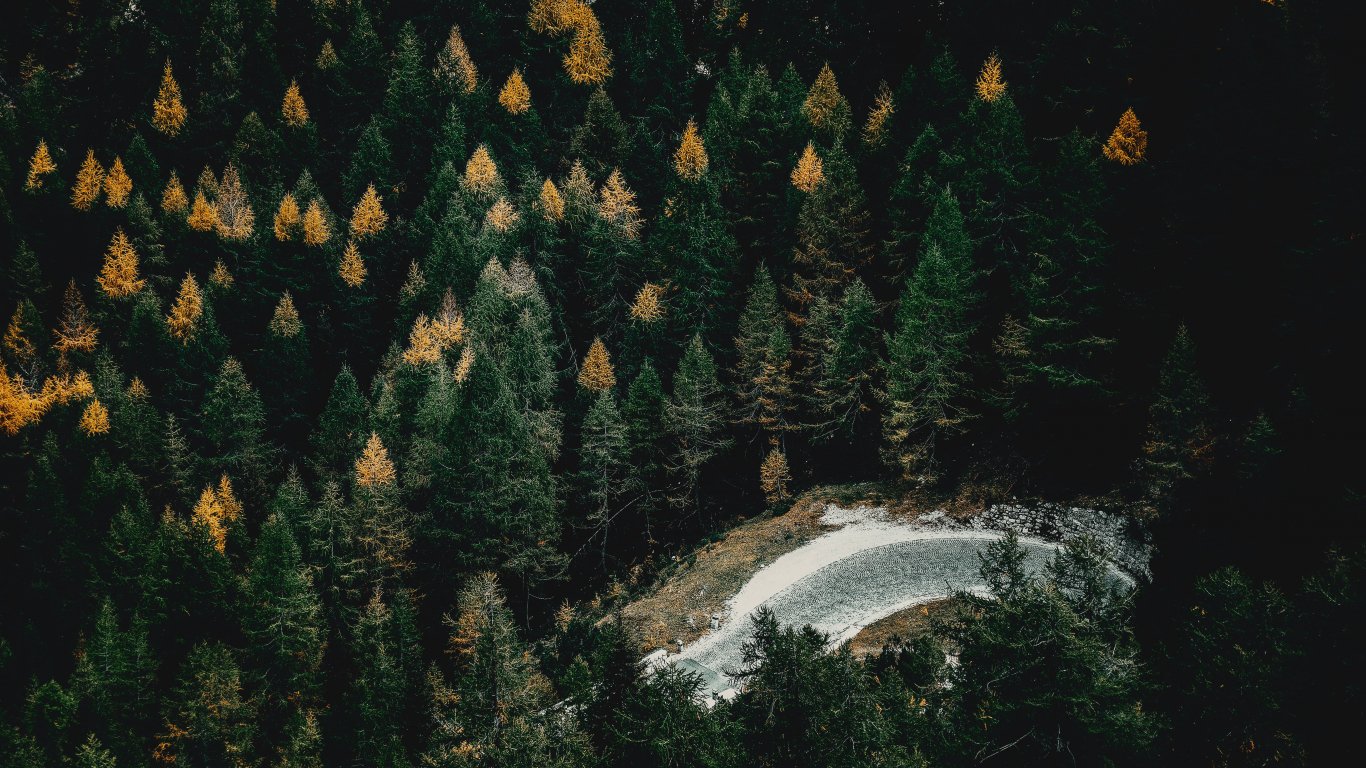 Обои: зеленый лес река вода - 1366x768