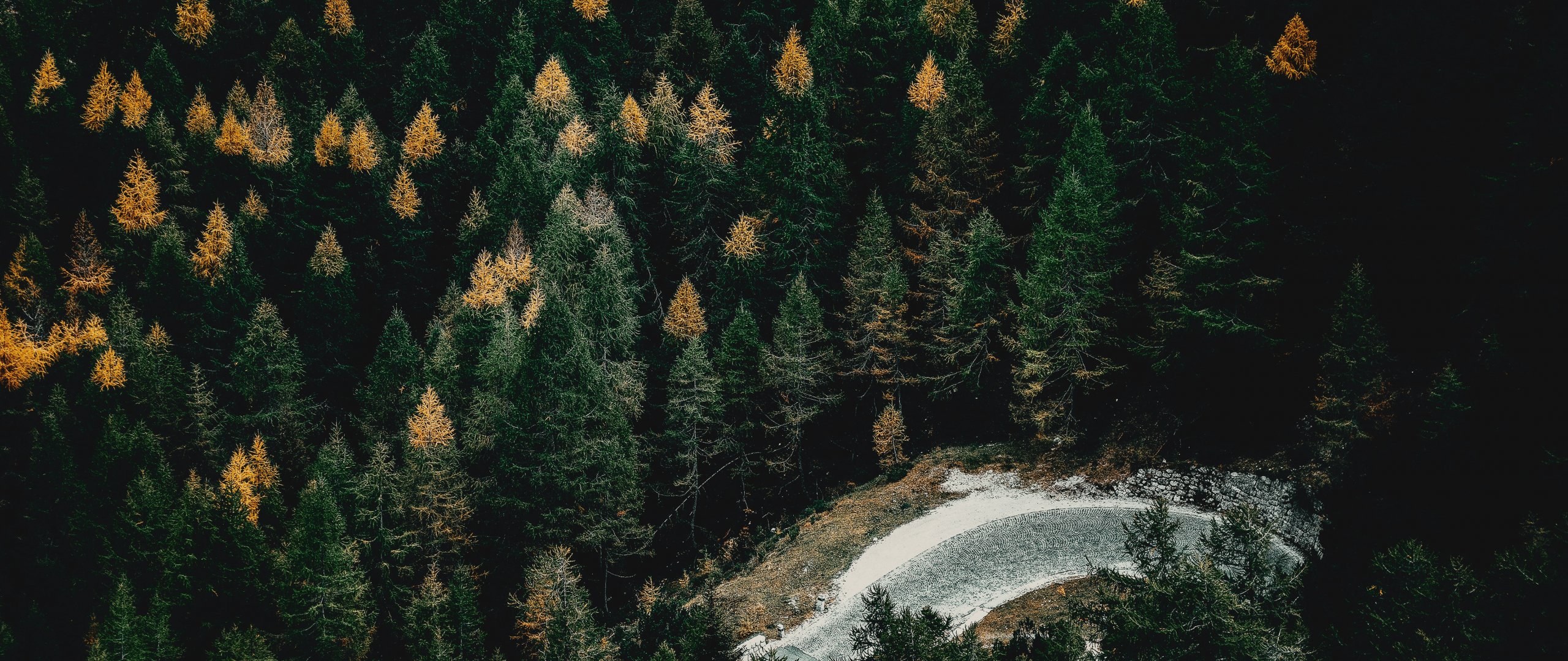 Обои: зеленый лес река вода - 2560x1080