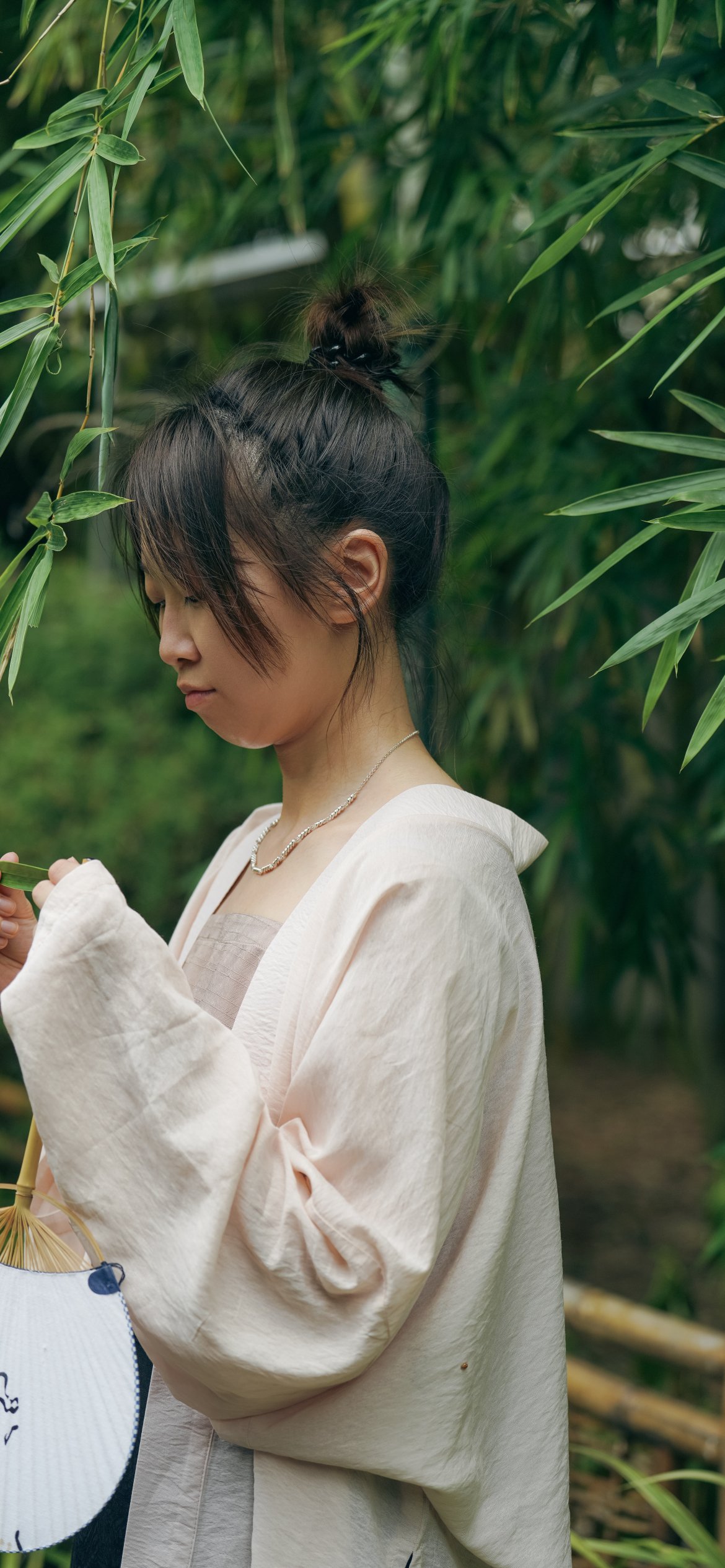 Обои: Восточная девушка в лесу - 1170x2532