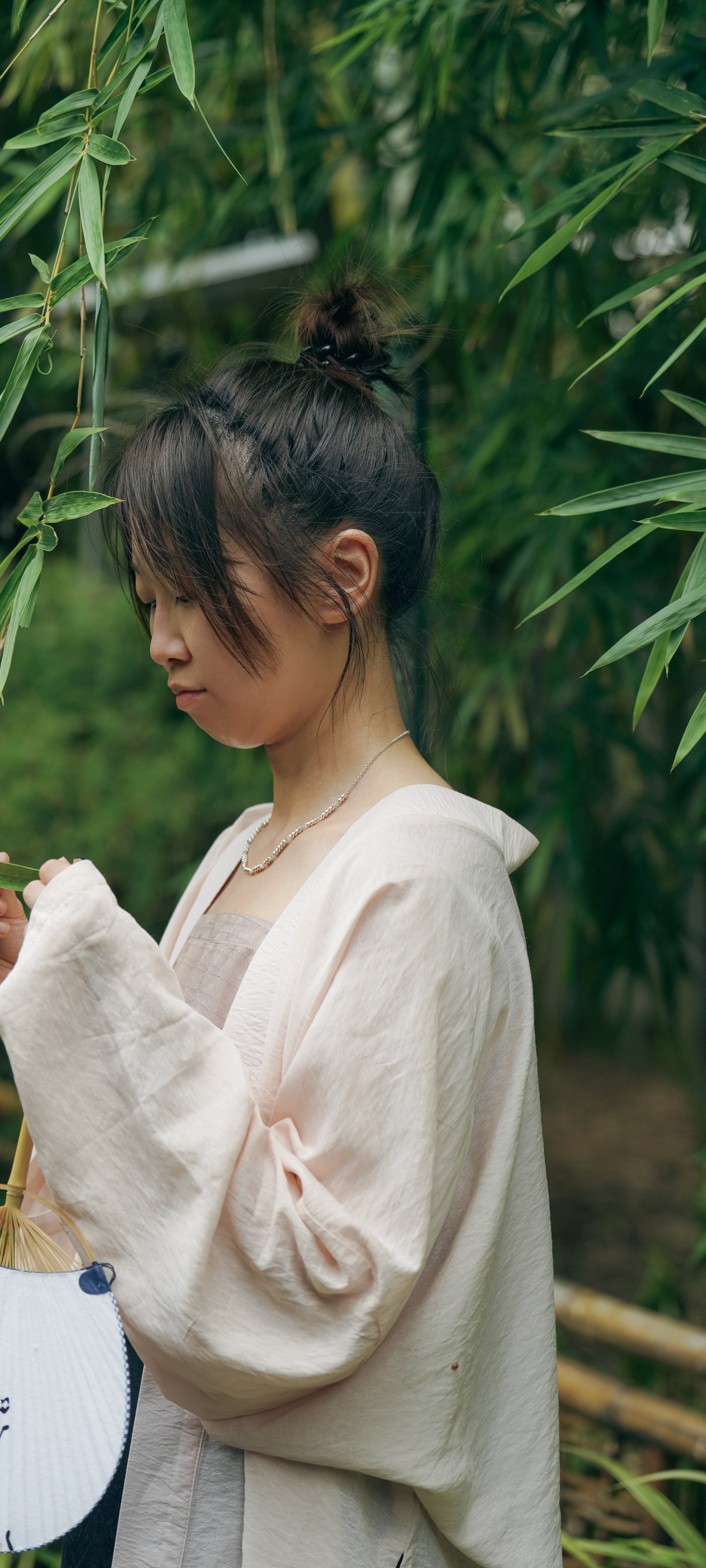 Обои: Восточная девушка в лесу - 1440x3200