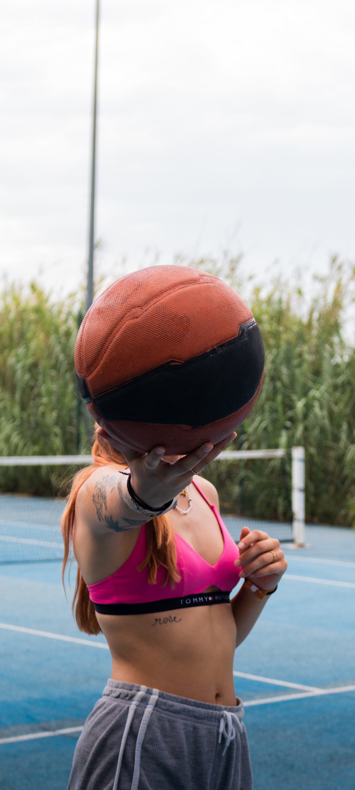 Обои: девушка с мячом - 1440x3200