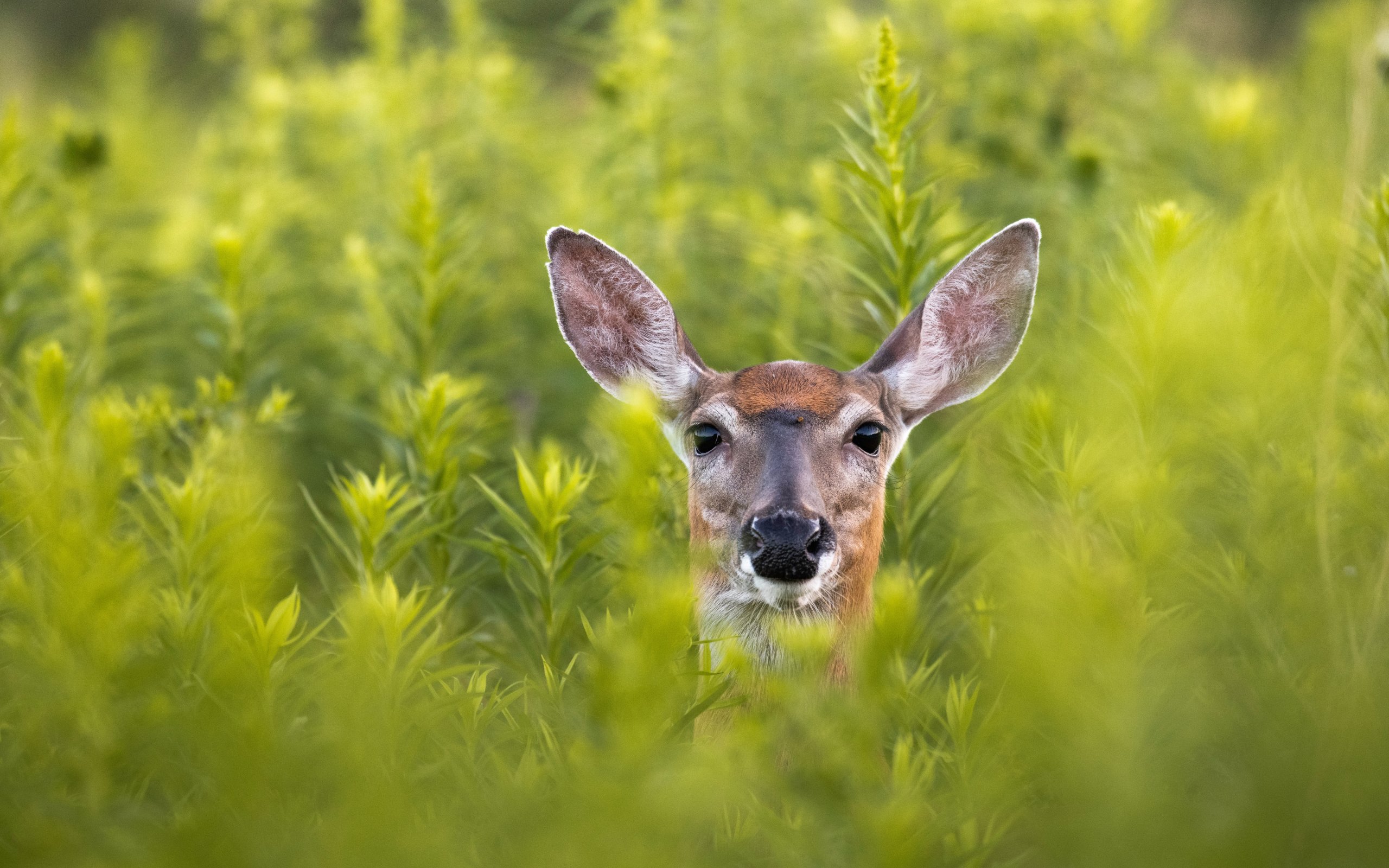 Обои: Олень в кустах - 2560x1600