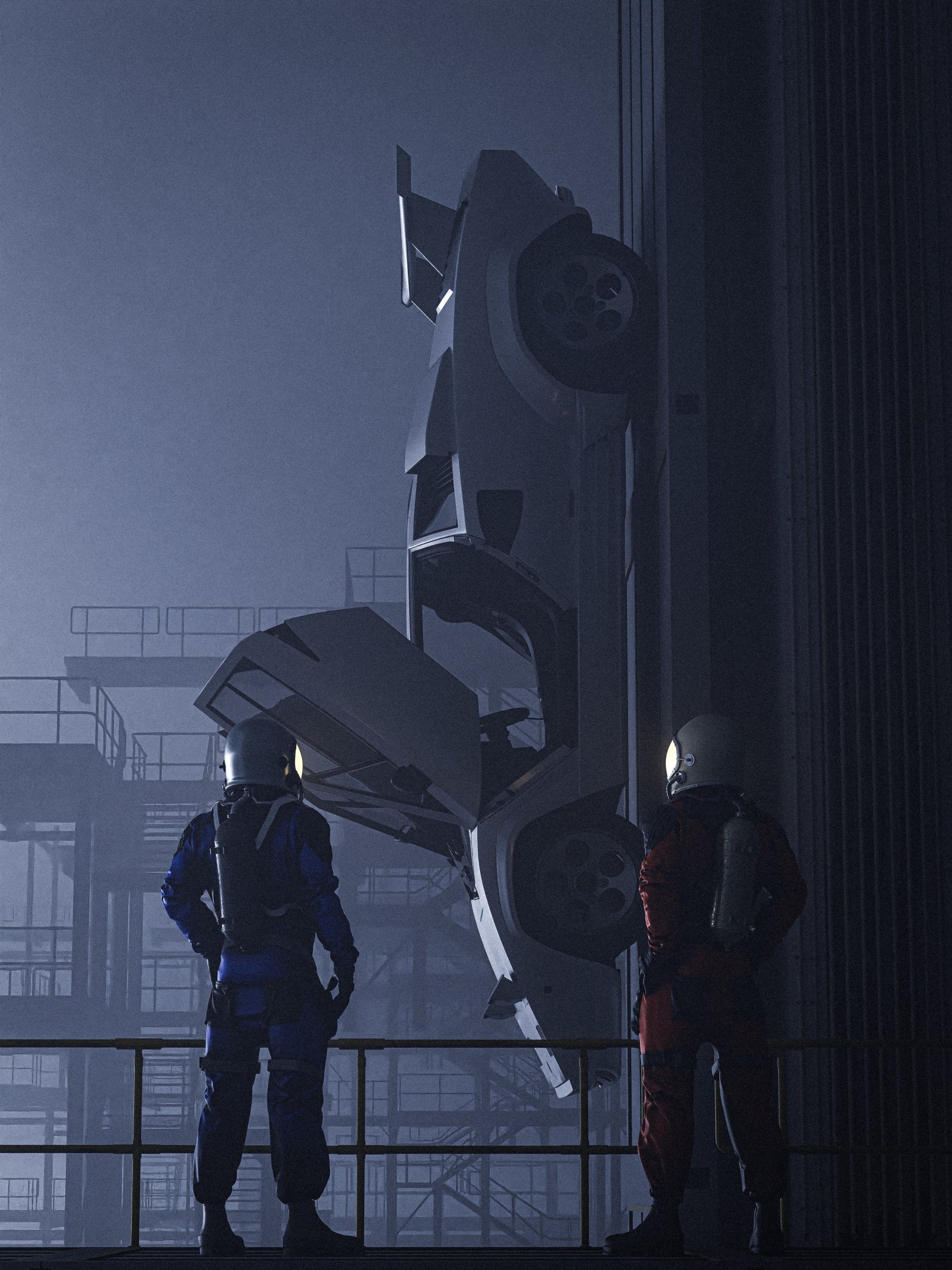 Sci-fi, космический корабль, вид с высоты птичьего полета