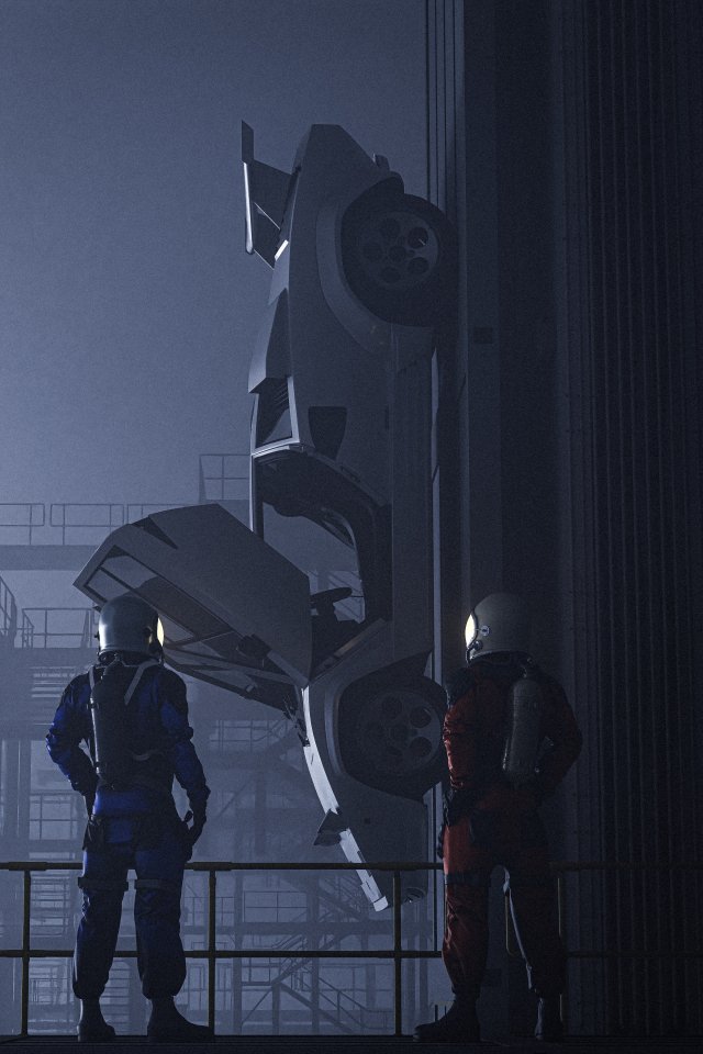 Sci-fi, космический корабль, вид с высоты птичьего полета