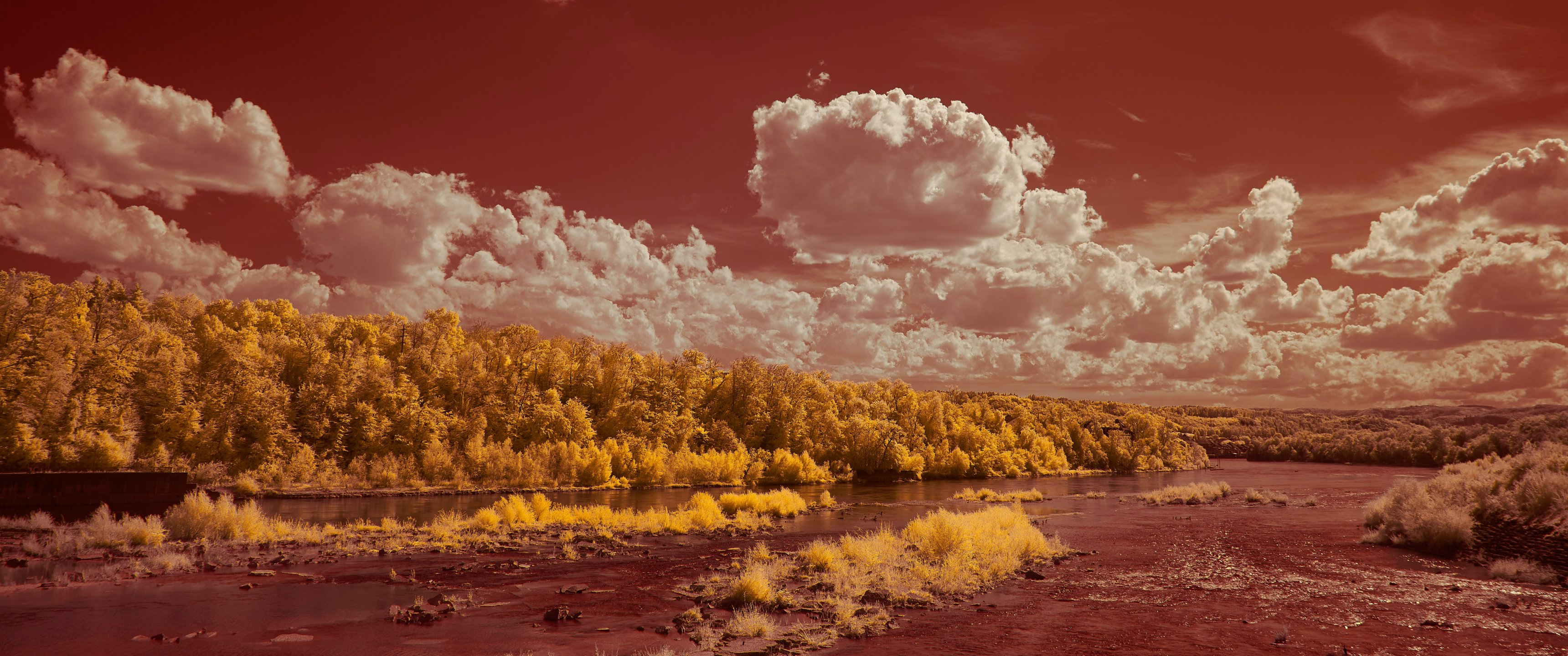 Обои: пейзаж, кучевые облака - 3440x1440