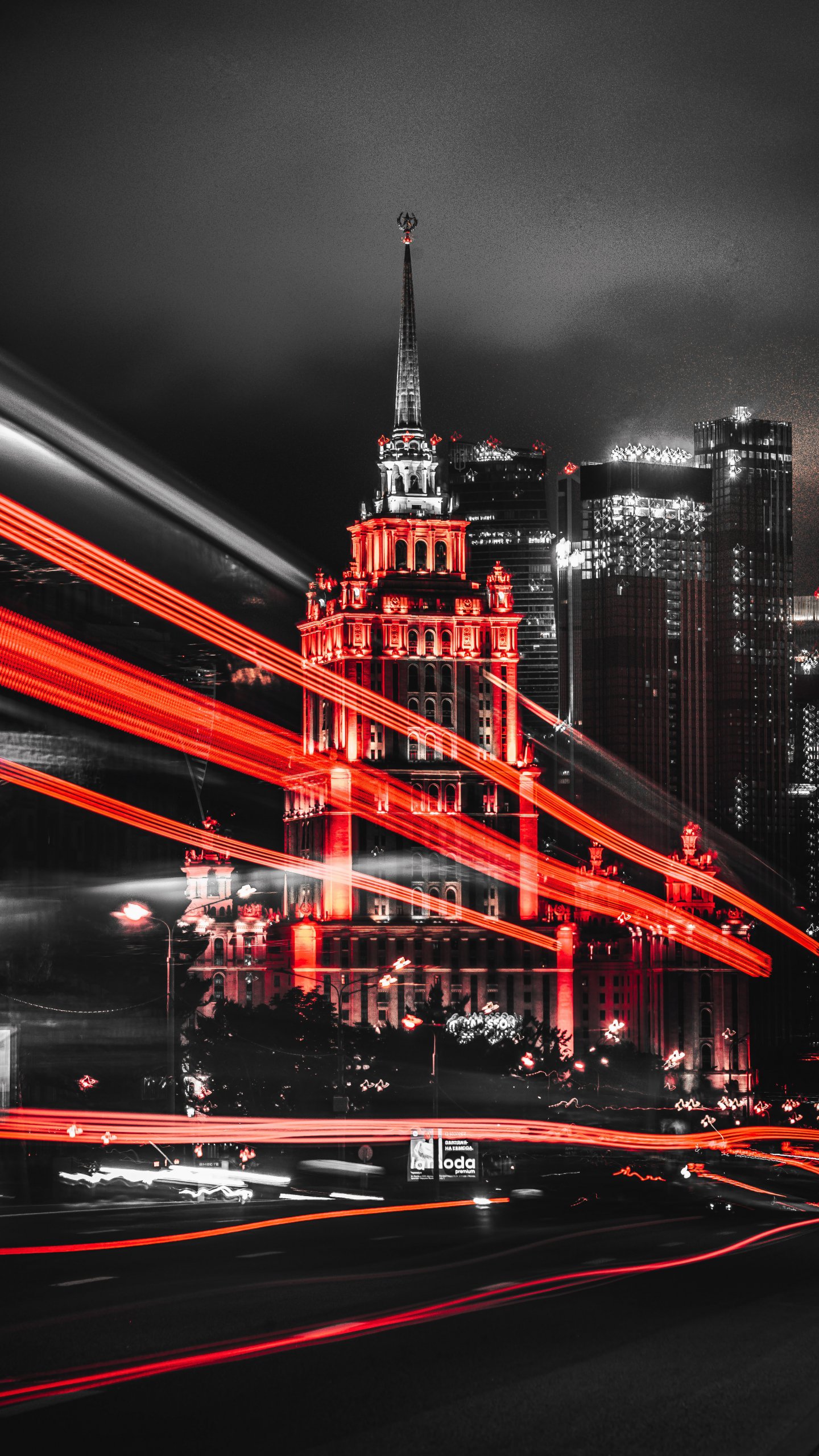 Обои: Сталинская высотка, Москва, черный - 1440x2560