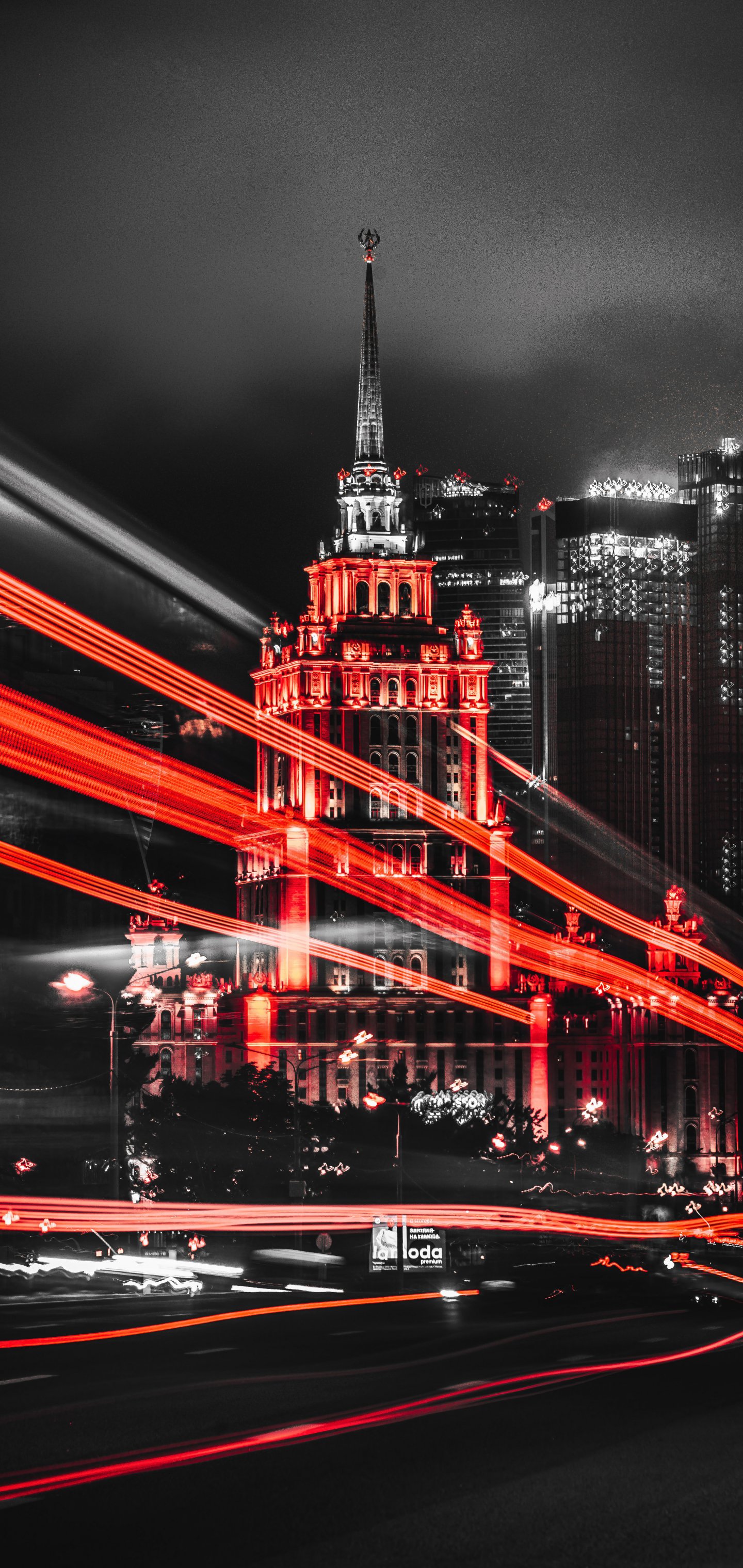 Обои: Сталинская высотка, Москва, черный - 1440x3040