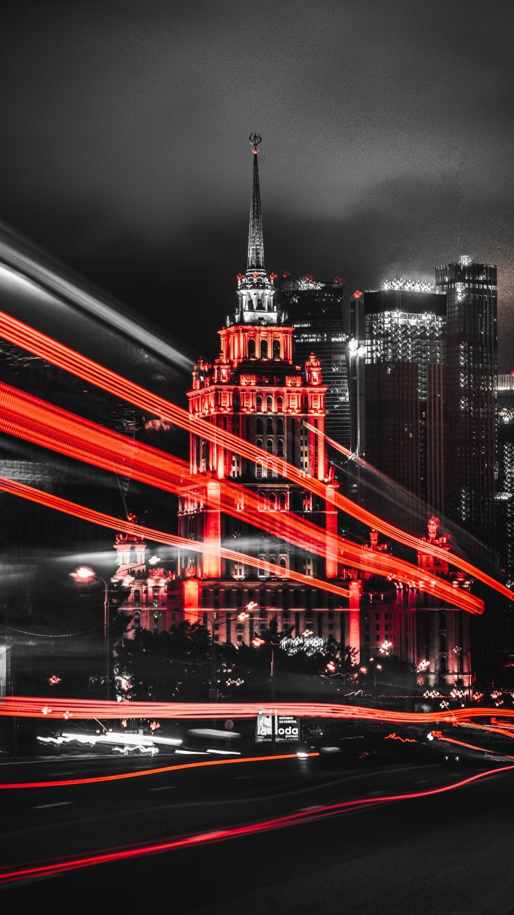 Обои: Сталинская высотка, Москва, черный - 750x1334