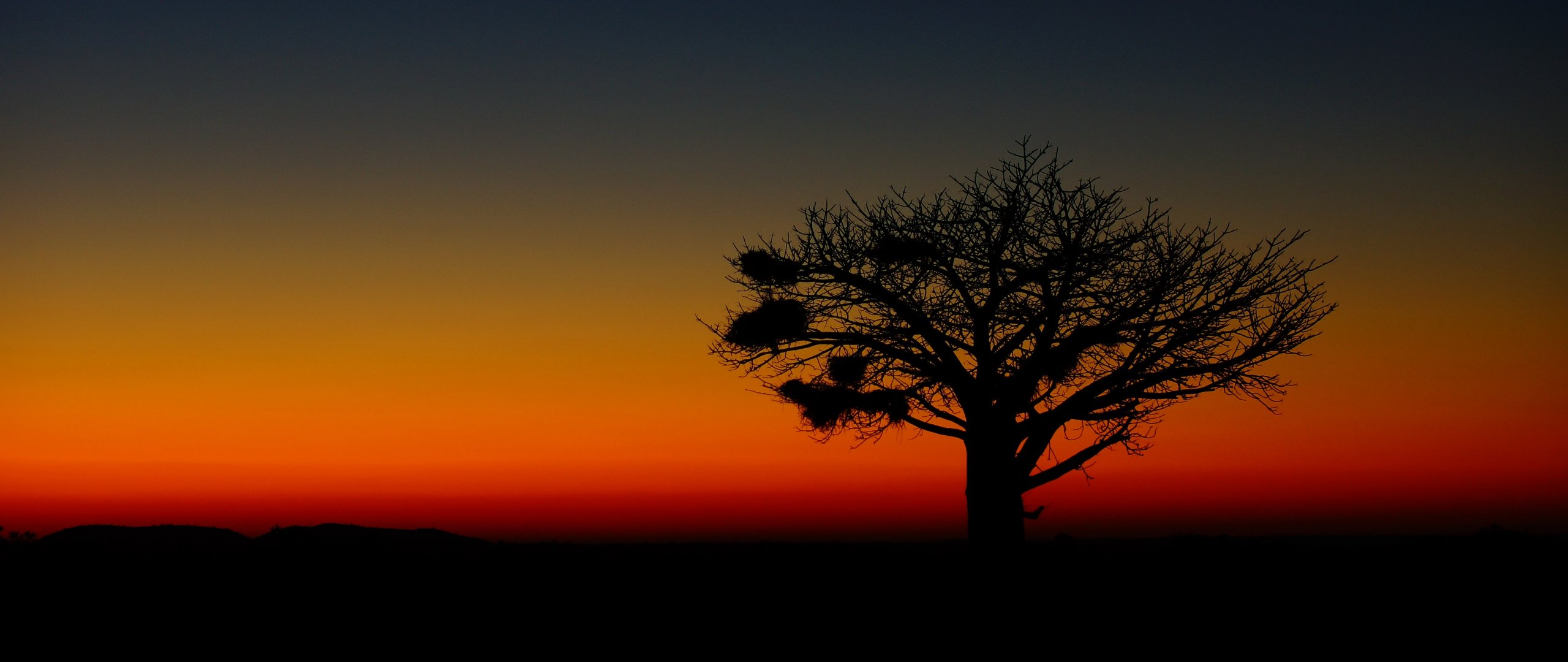 Обои: пейзаж, дерево, ночь - 2560x1080