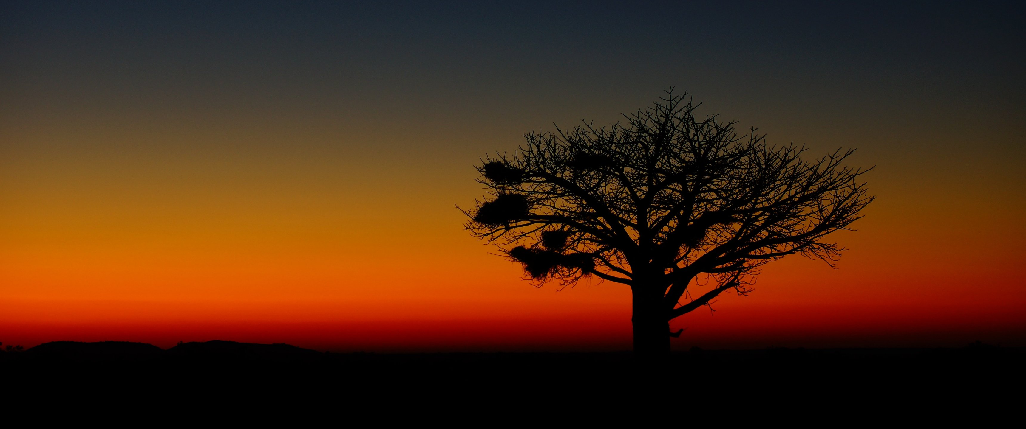 Обои: пейзаж, дерево, ночь - 3440x1440