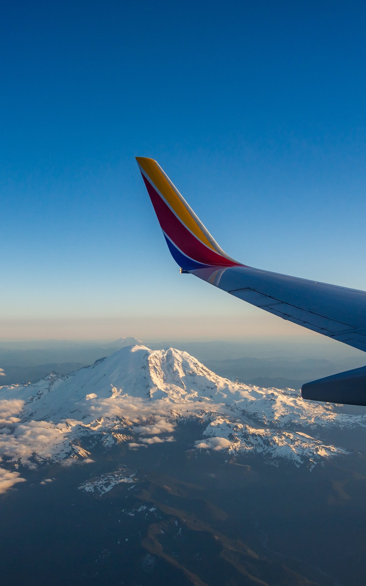 Обои: крыло самолета, полет, Маунт-Рейнир - 1200x1920