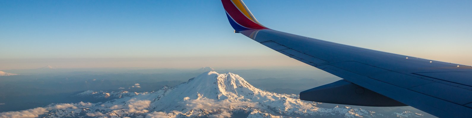 Обои: крыло самолета, полет, Маунт-Рейнир - 1590x400