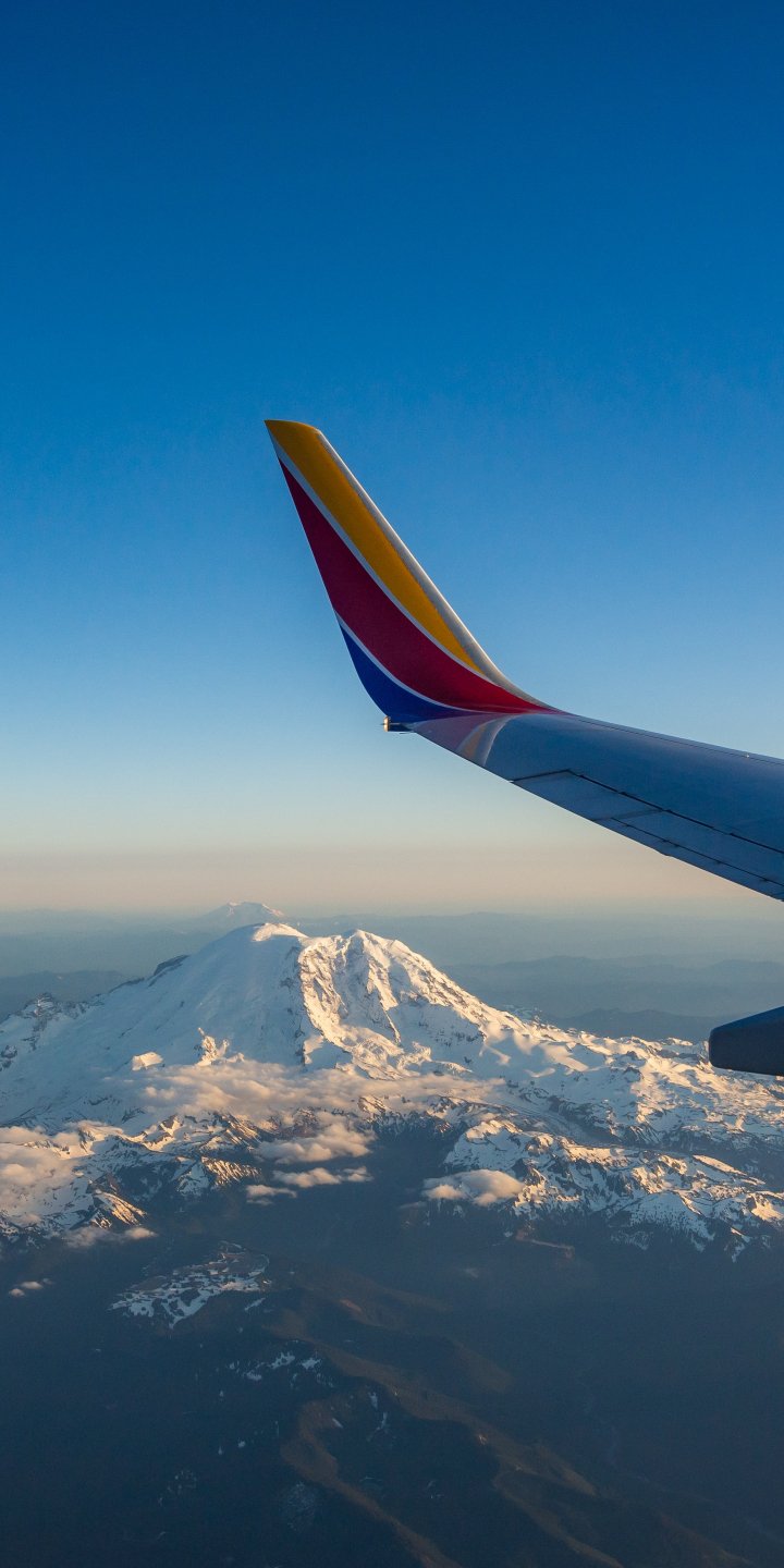 Обои: крыло самолета, полет, Маунт-Рейнир - 720x1440