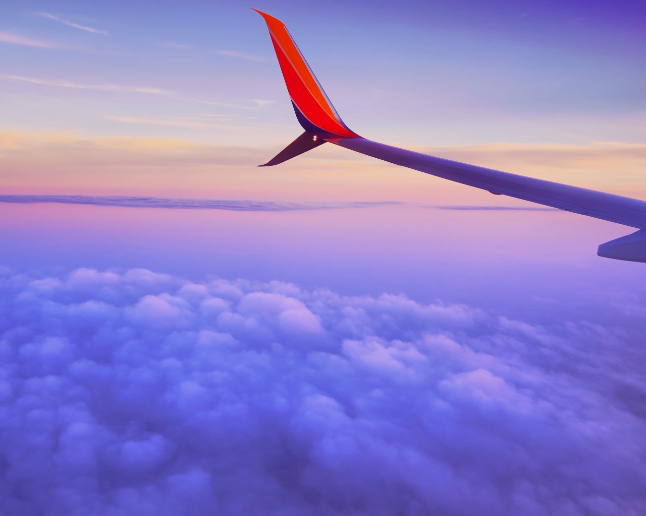 Обои: крыло самолета, полет, облака - 1280x1024