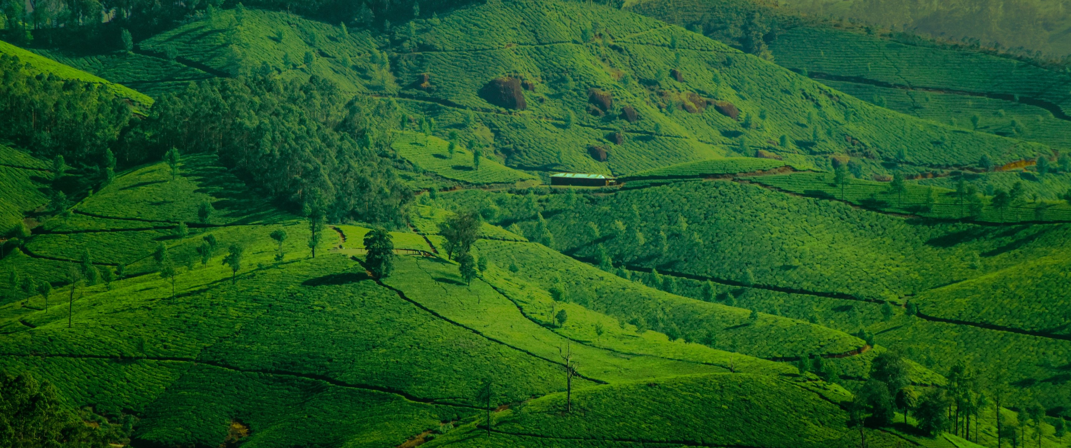Обои: пейзаж, зеленый, холмы - 3440x1440