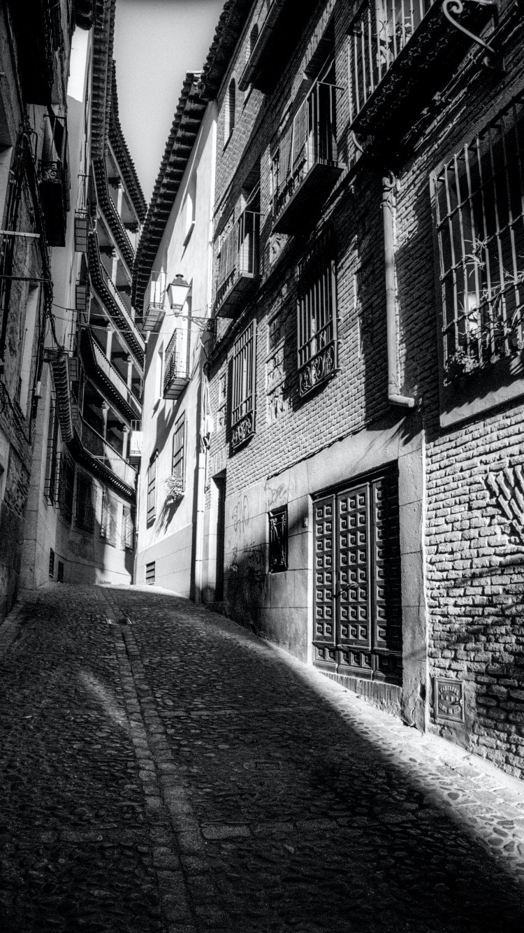 Обои: Толедо, Испания, ЧБ - 750x1334