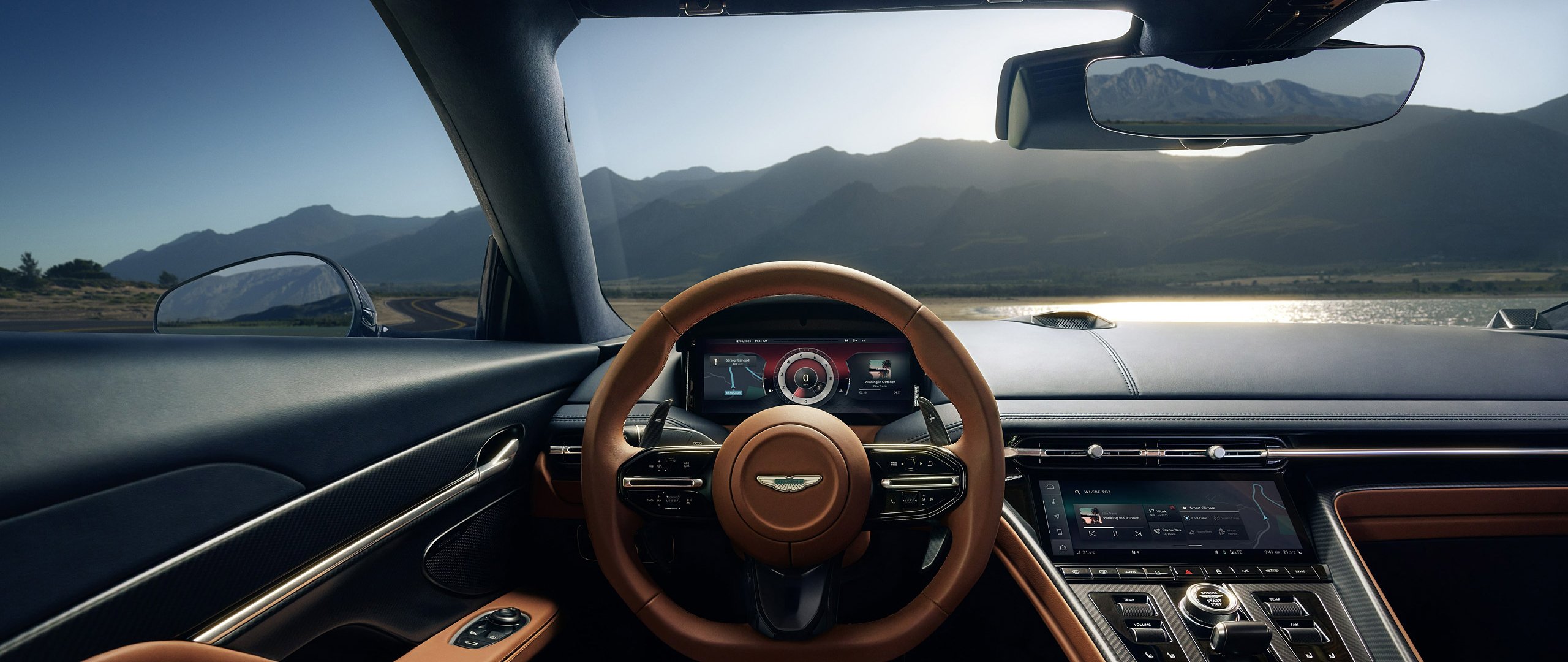 Обои: Bentley, кожаный салон, руль - 2560x1080