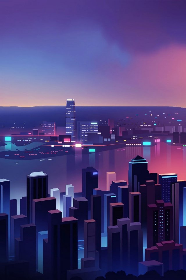 Обои: ночной город, вид с высоты птичьего полета, фиолетовый - 640x960
