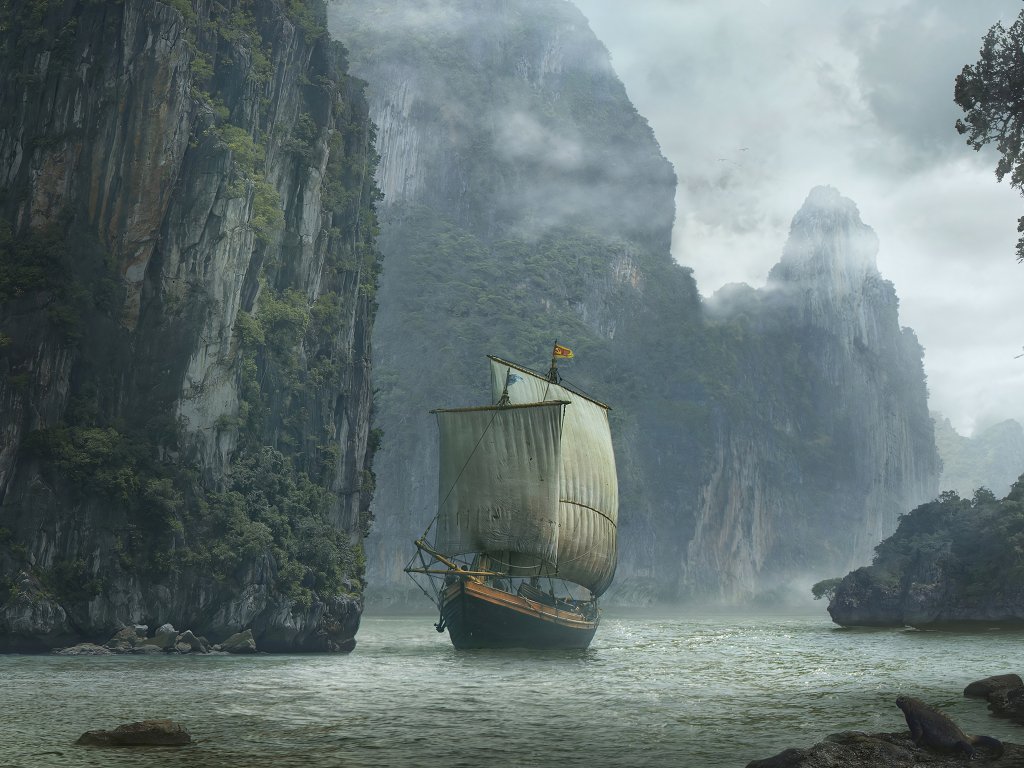Обои: корабль, пейзаж, парусник - 1024x768
